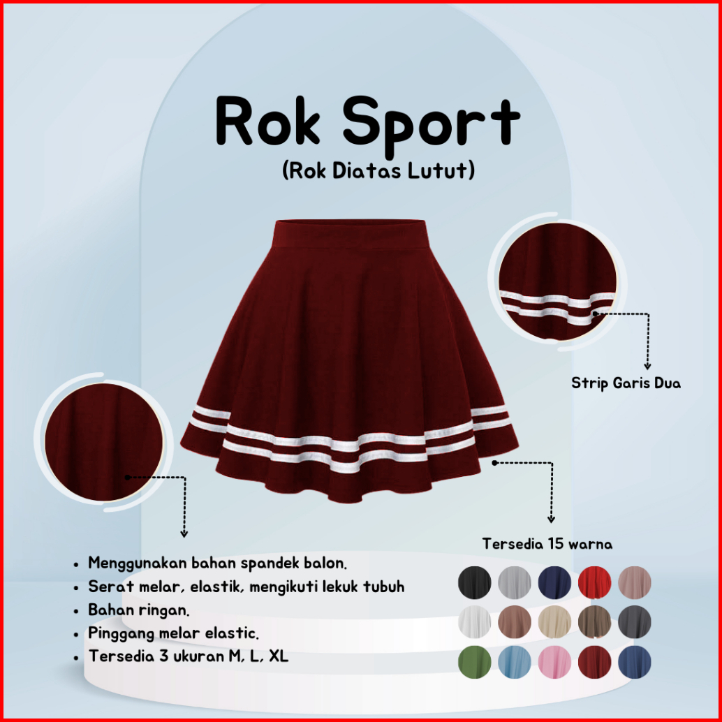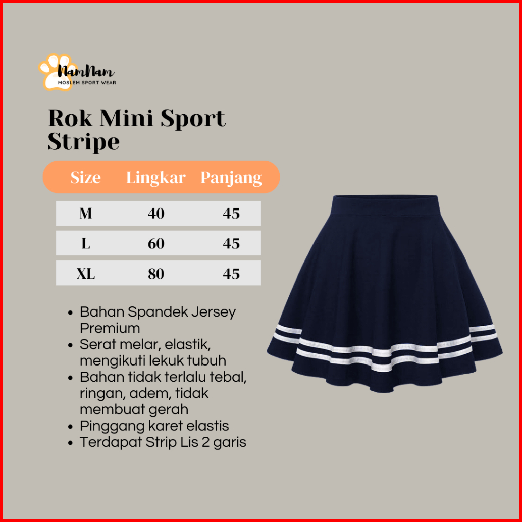 Rok Olahraga Wanita Sport Skirt Mini Stripe Jogging Poundfit