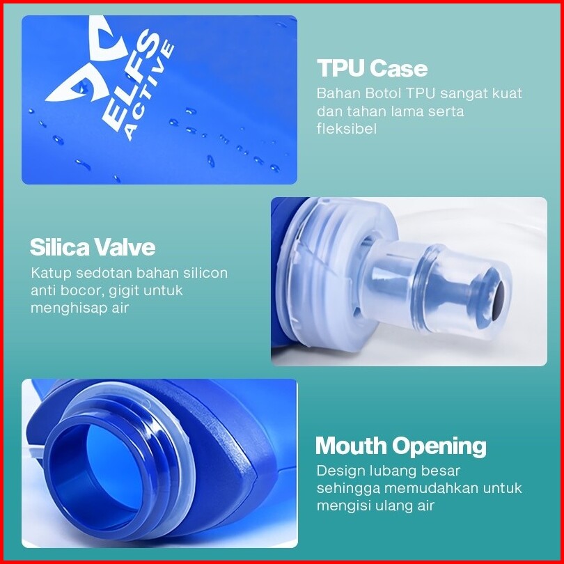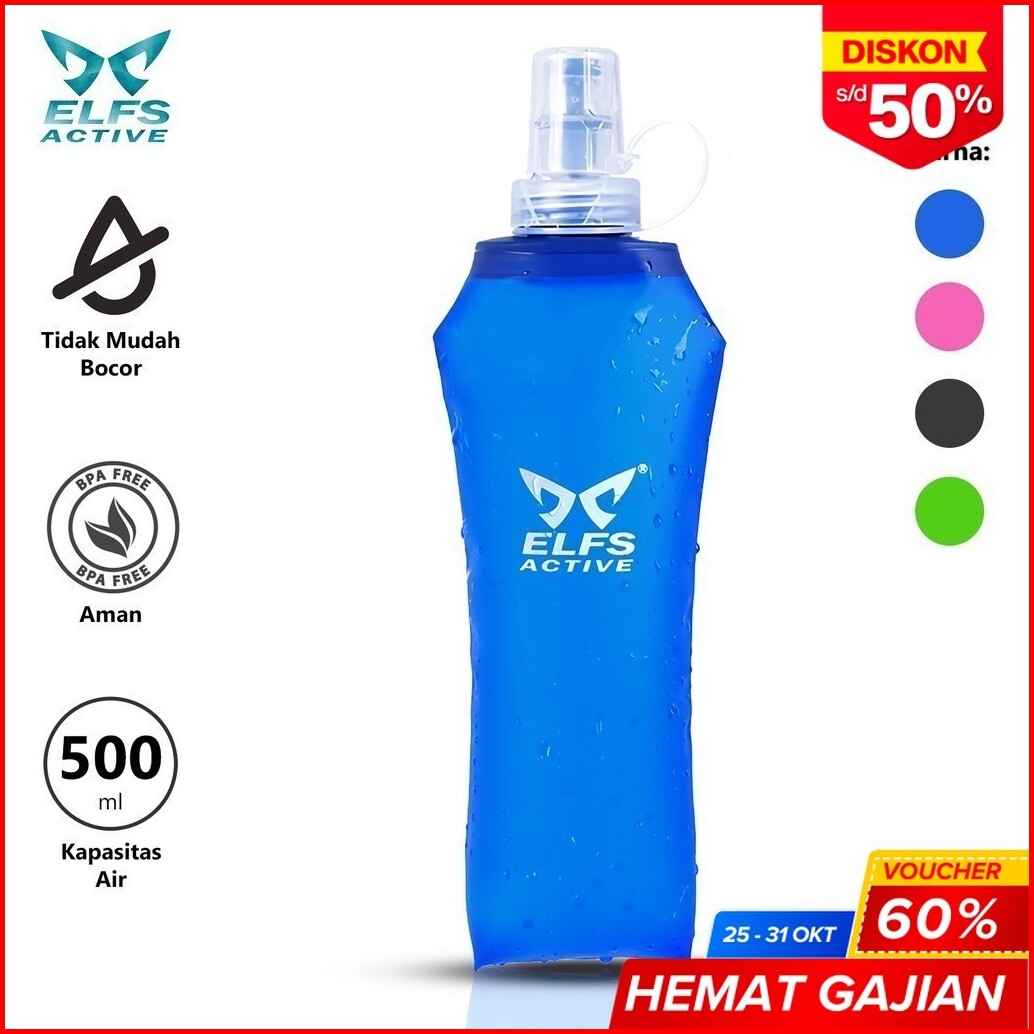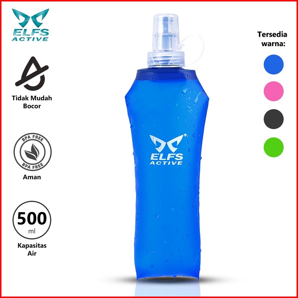 Elfs Active Foldable Soft Flask 500 Ml Botol Air Minum Lipat Sport Water Bottle Bpa Free