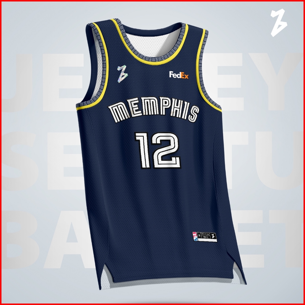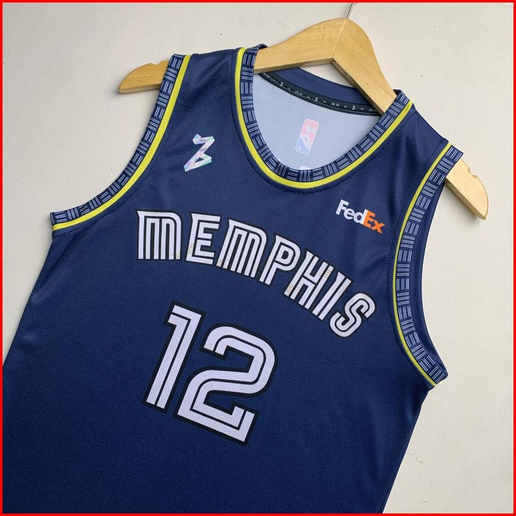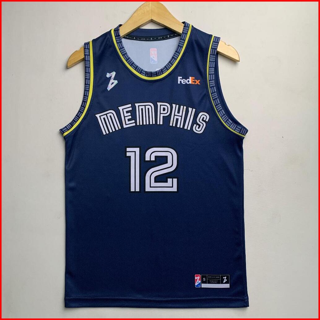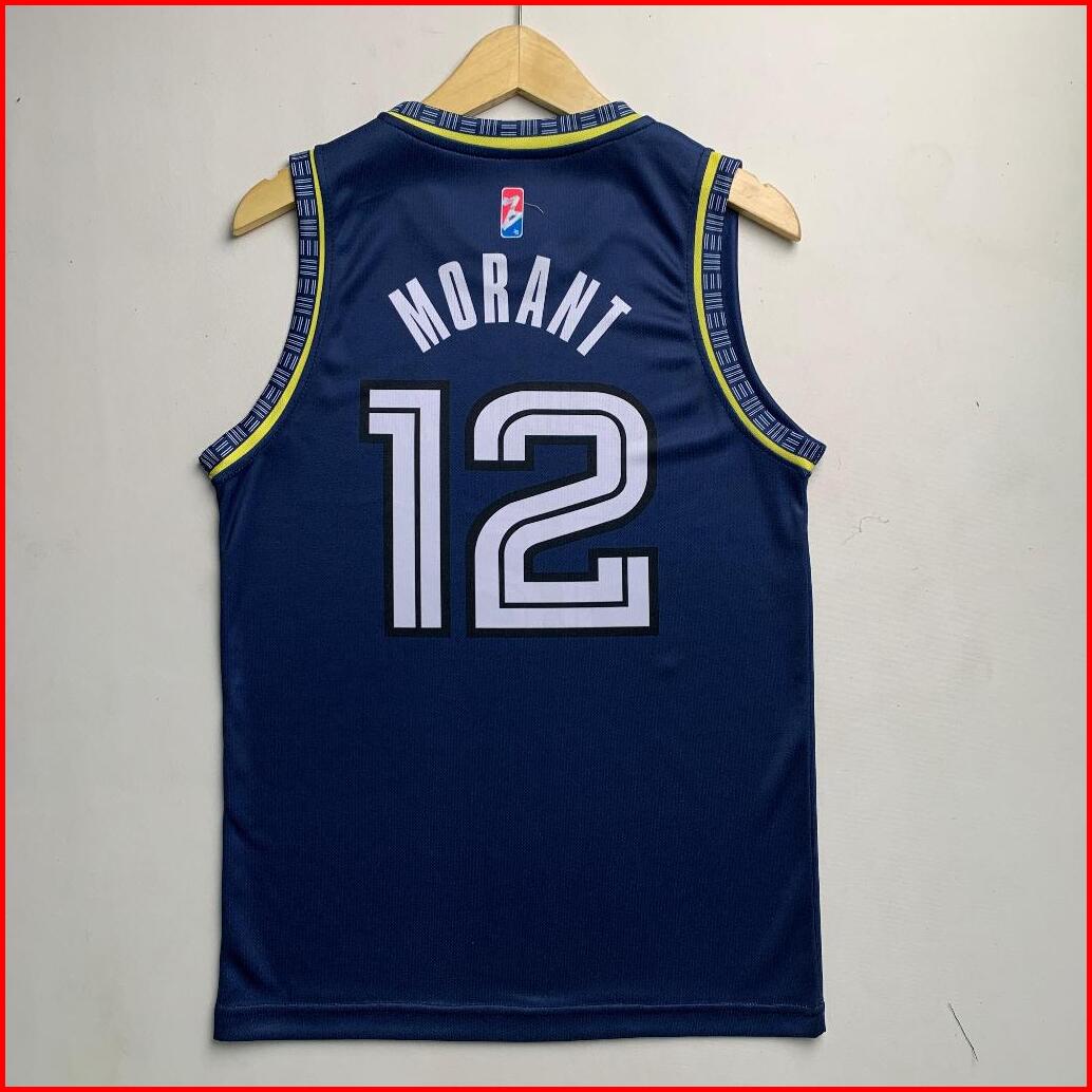 Jersey Basket Ja Morant Memphis Grizzlies 12 Dongker Navy Swingman Baju Kaos Atasan