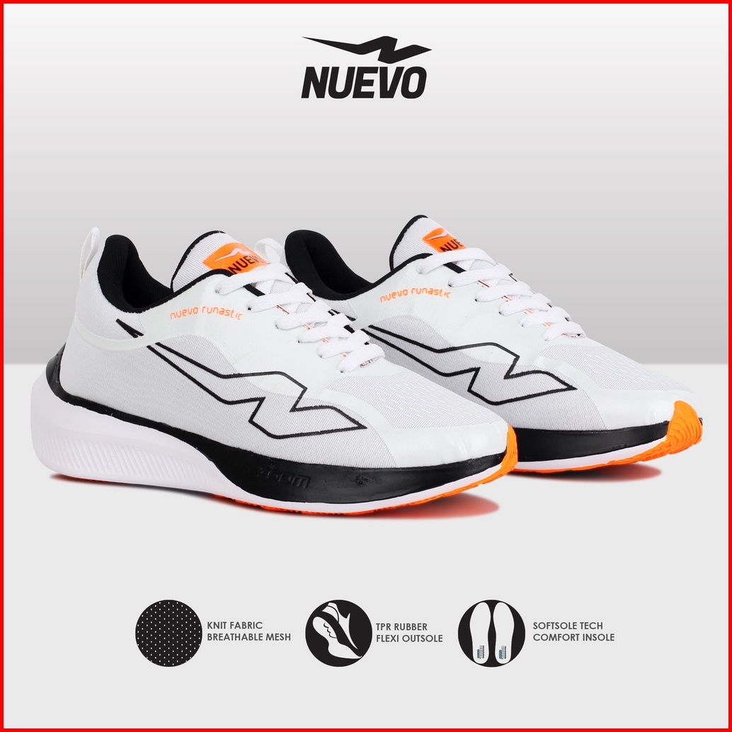 Nuevo - Sepatu Lari Pria Sneakers Kasual Olahraga Running Nuevo Runastic Putih Hitam Ringan Murah