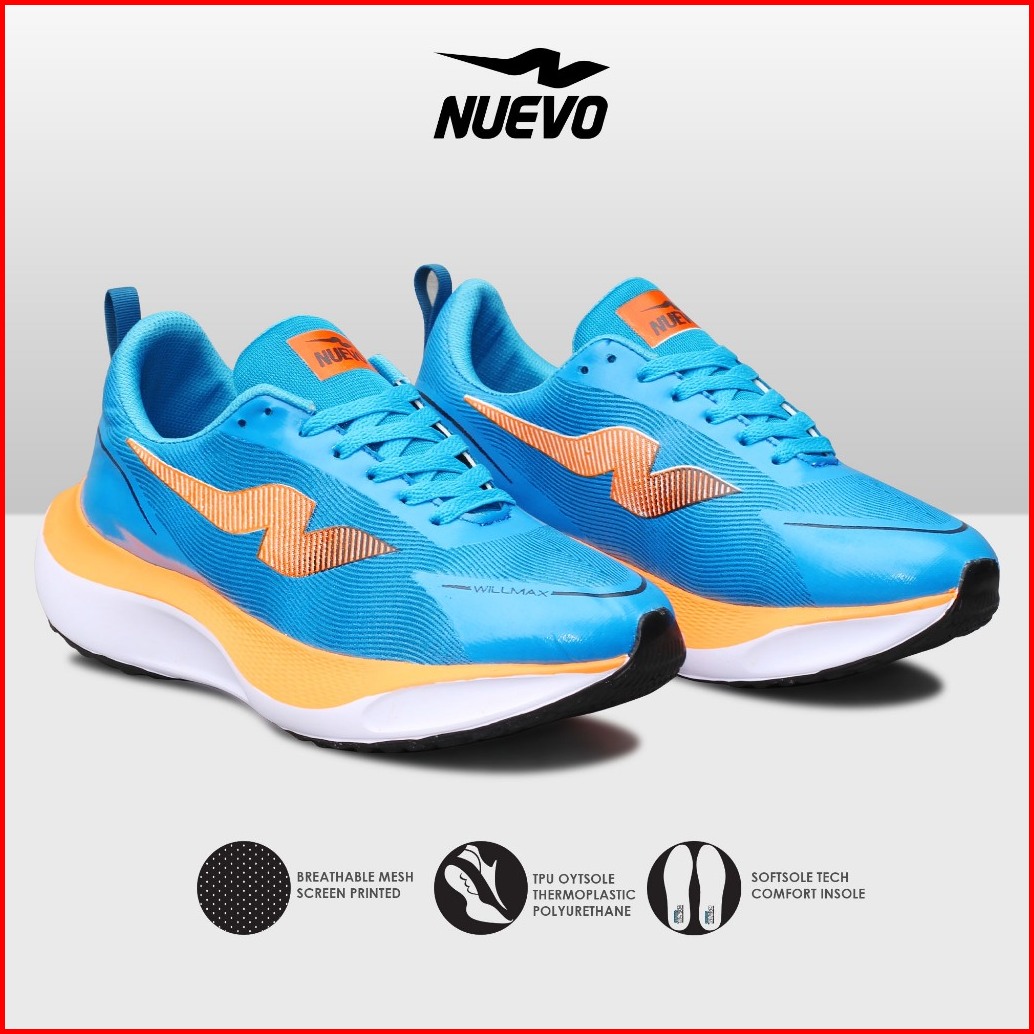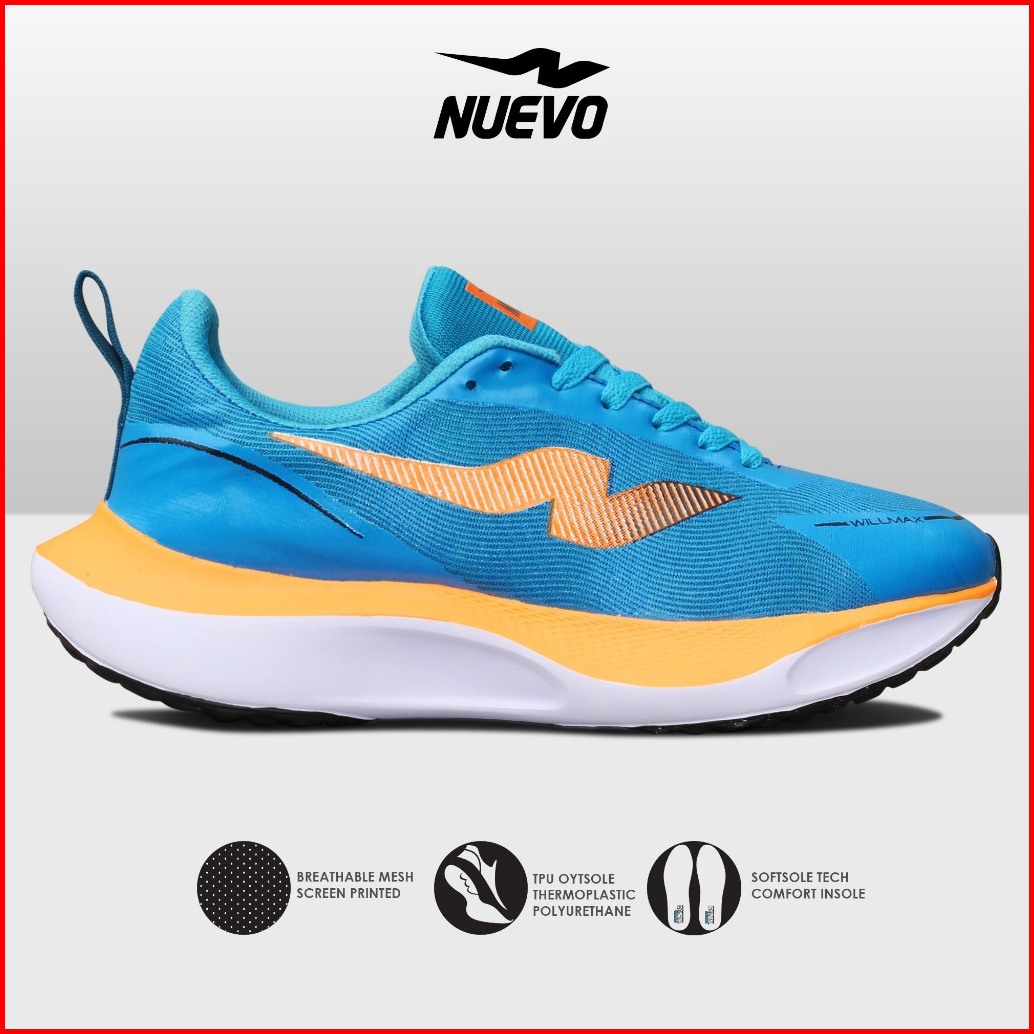 Nuevo - Sepatu Lari Running Pria Willmax Biru Orange Sneakers Olaharaga Jogging Ringan