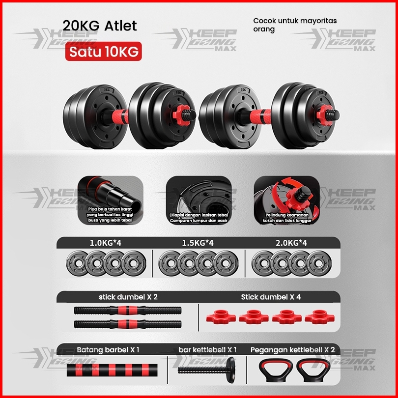 Keep Going Max Dumbbell Pvc 20kg Dumbell Barbell Set 20kg Dumbel Perlindungan Lingkungan Peralatan Kebugaran Olahraga
