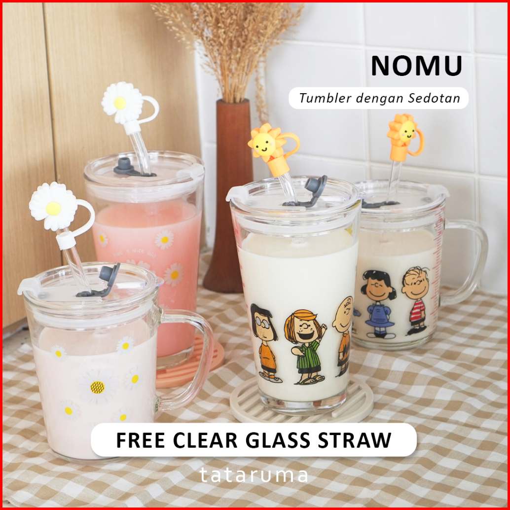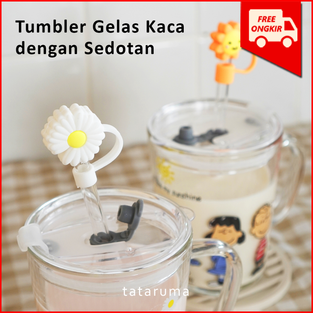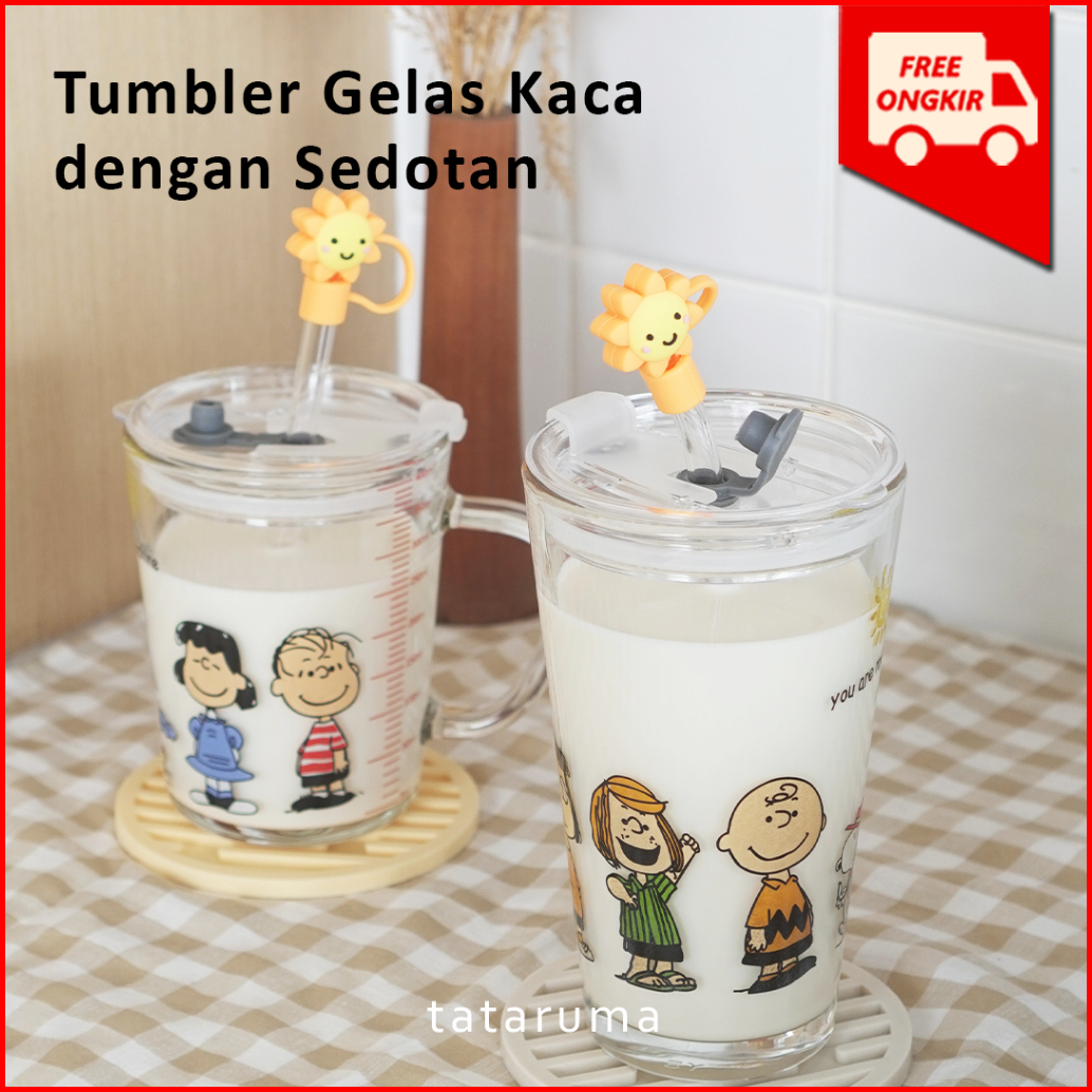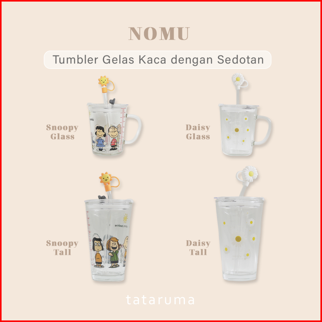 Tataruma Nomu - Tumbler Kaca Gelas Minum Snoopy Daisy Free Glass Straw Dengan Stopper