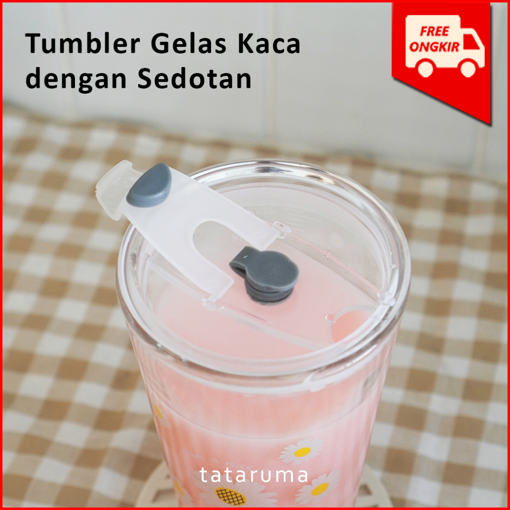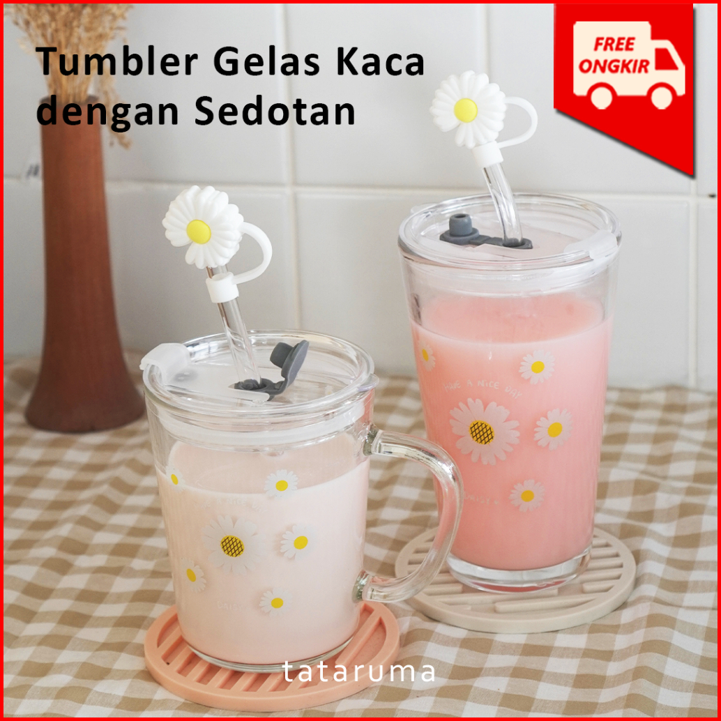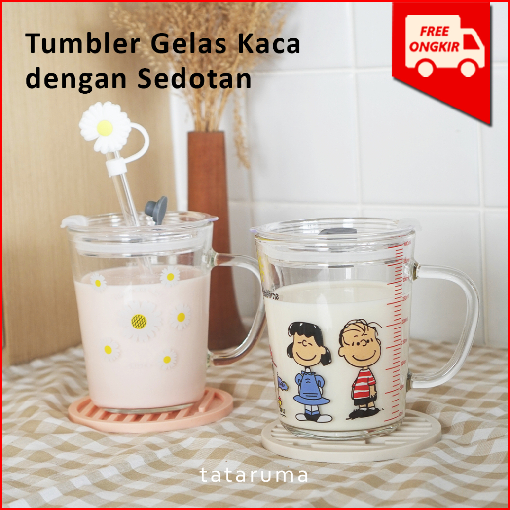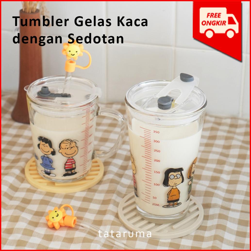 Tataruma Nomu - Tumbler Kaca Gelas Minum Snoopy Daisy Free Glass Straw Dengan Stopper