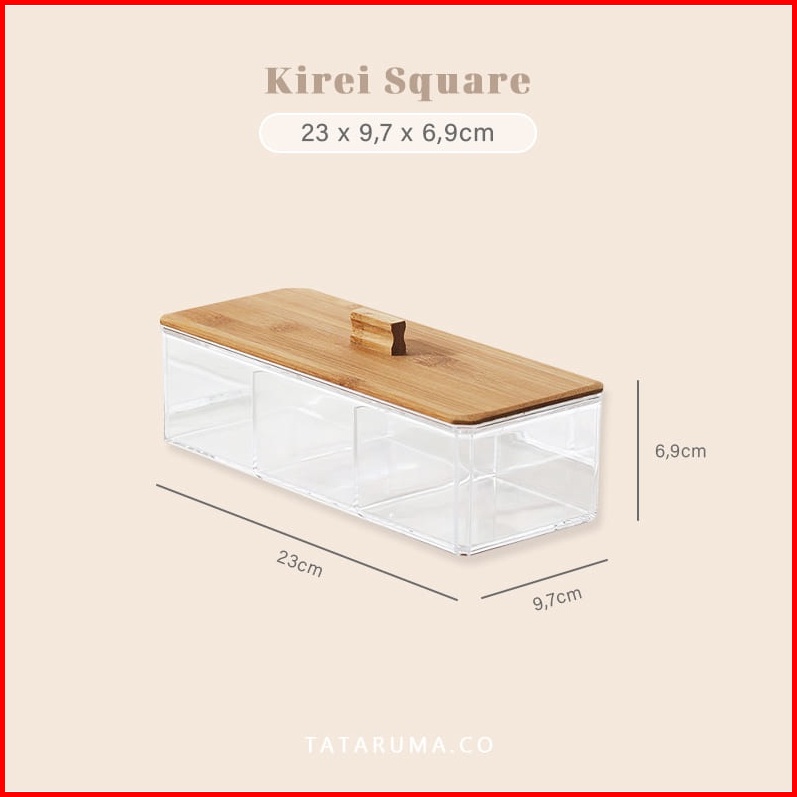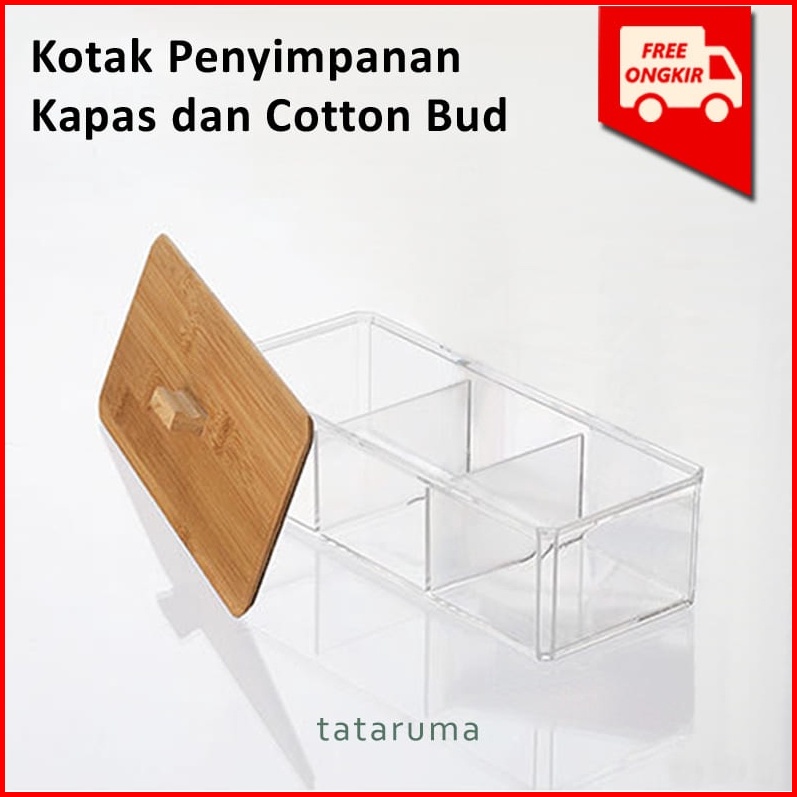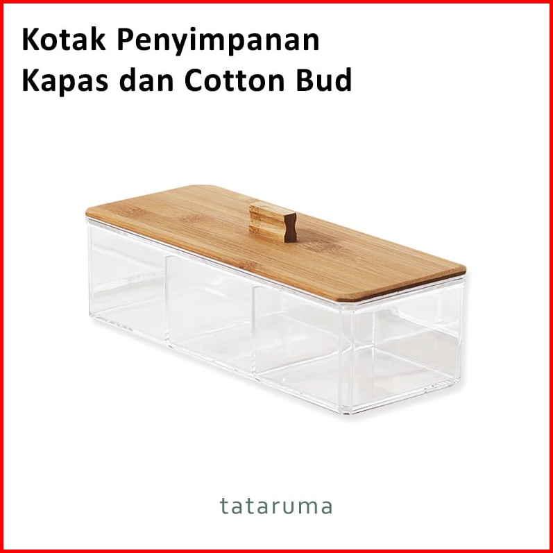 Tataruma Kirei Square - Kotak Penyimpanan Kapas Cotton Bud Transparan Akrilik Tutup Bambu Organizer Serbaguna