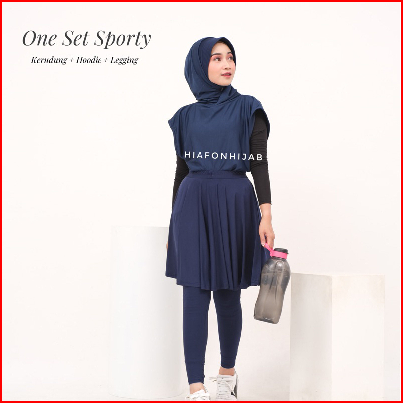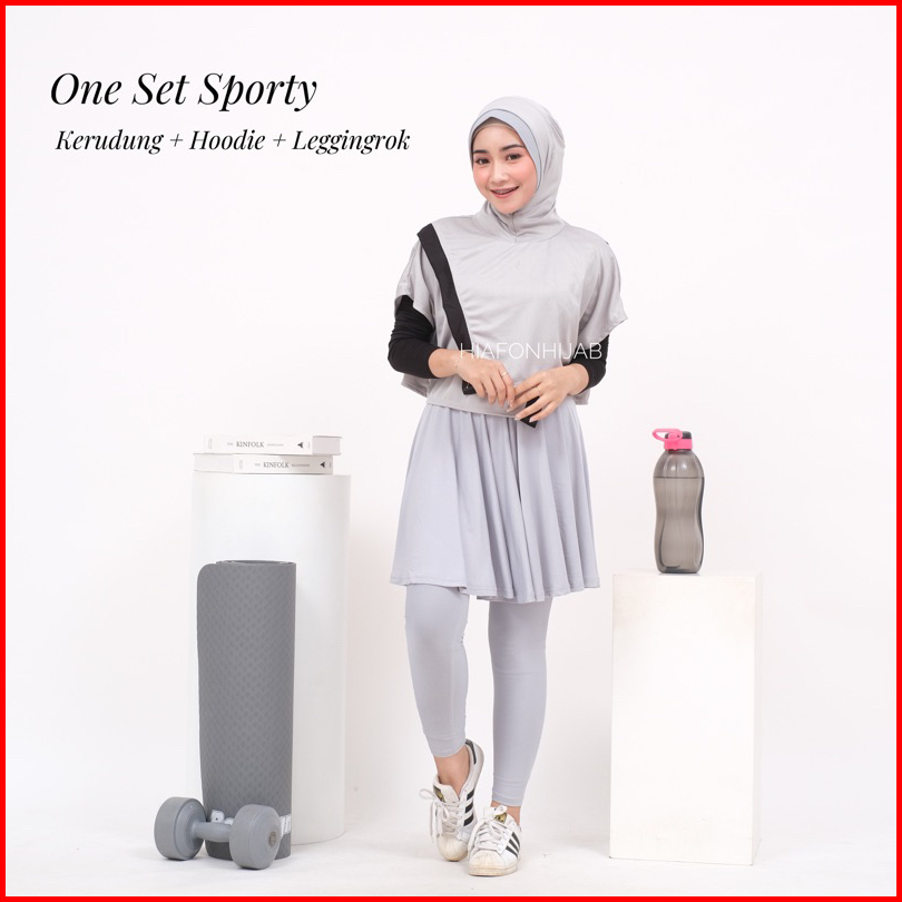 One Set Baju Olahraga Kerudung Hoodie Leggingrok One Set Sporty Baju Olahraga Belum Manset