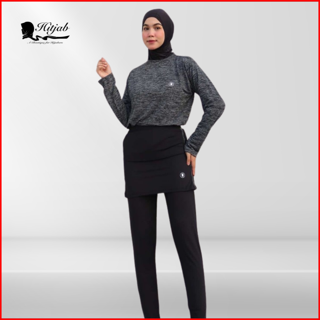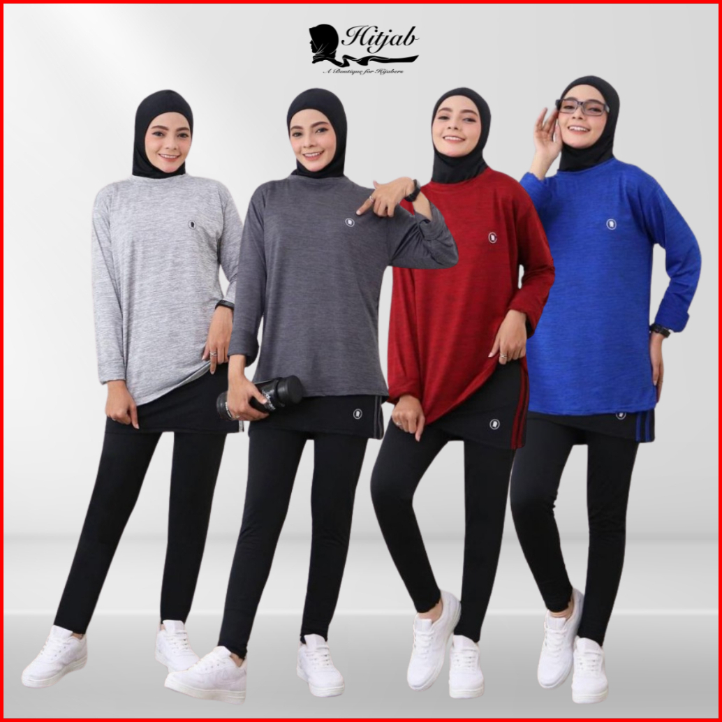 Hitjab - Setelan Olahraga Wanita 3 Pcs Sport Padel Set Hijab Atasan Legging Rok