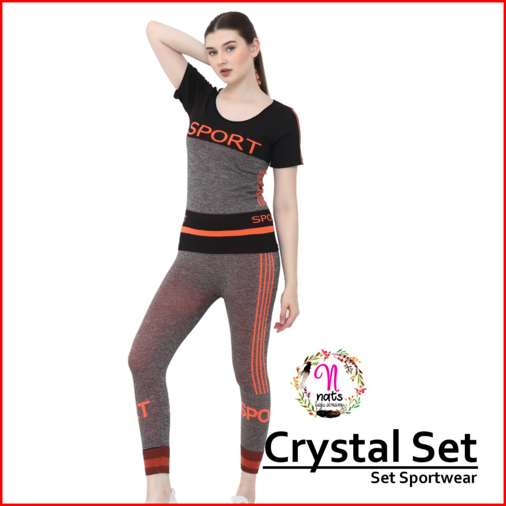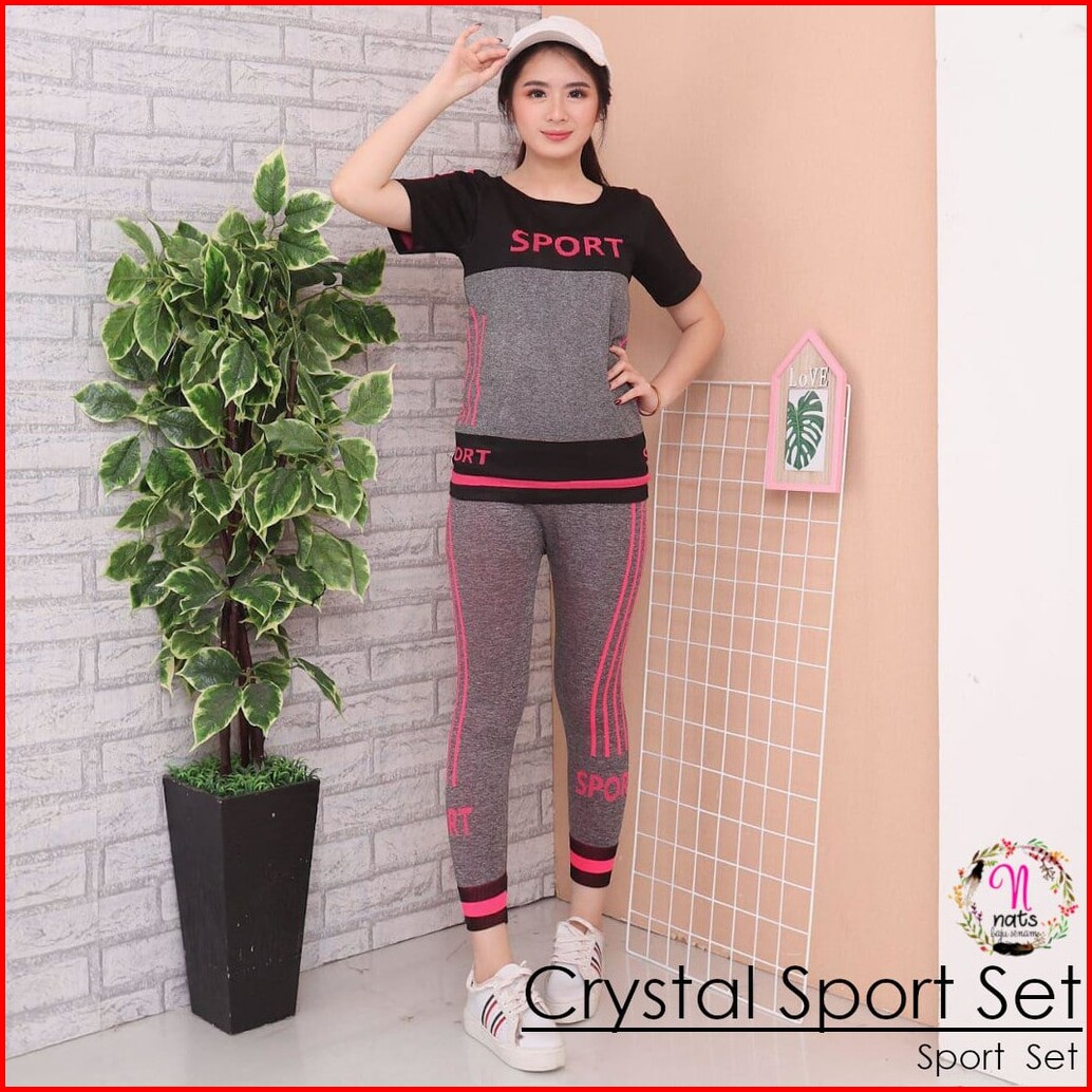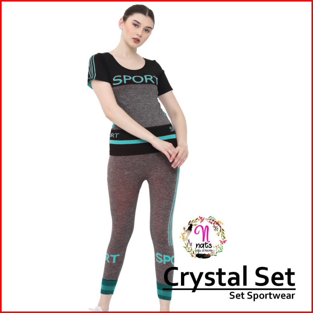 Crystal Sport Set Setelan Baju Senam Import Baju Olahraga Yoga Fitness Wanita