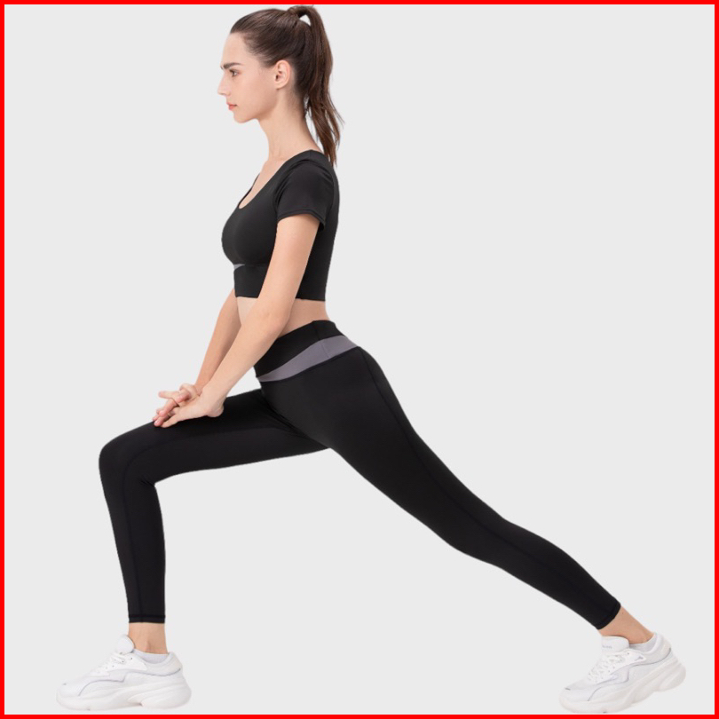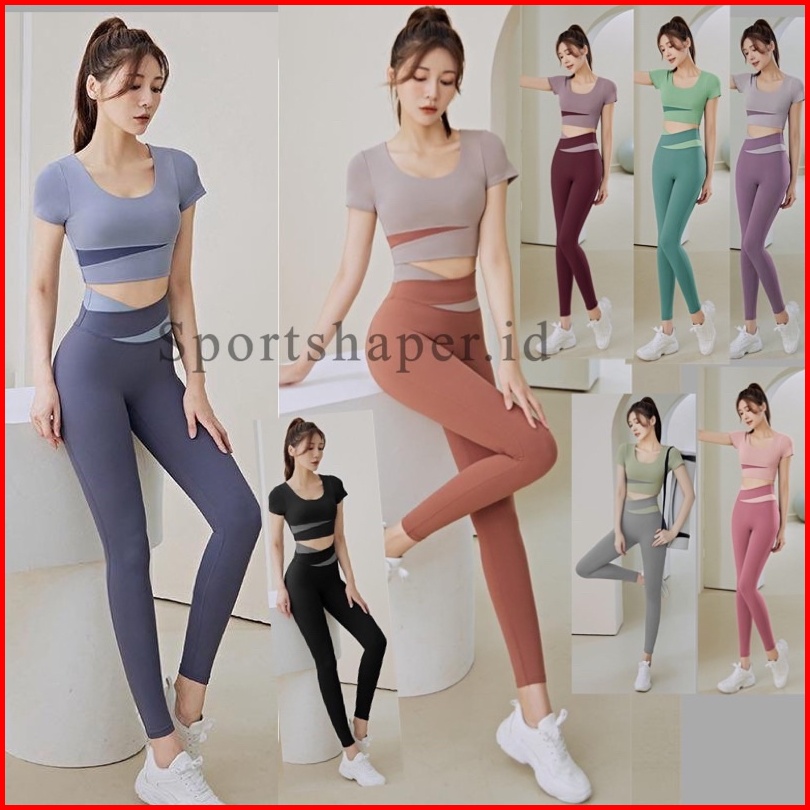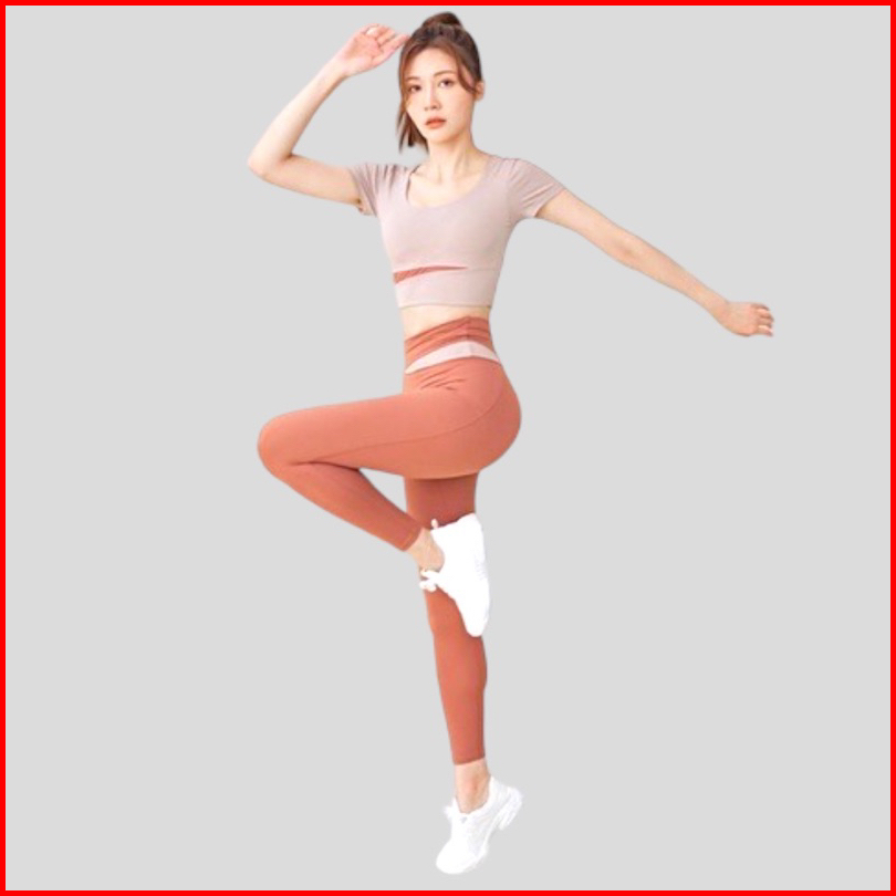 Setelan Olahraga Caramel Baju Lengan Pendek Legging Yoga Fitness Gym