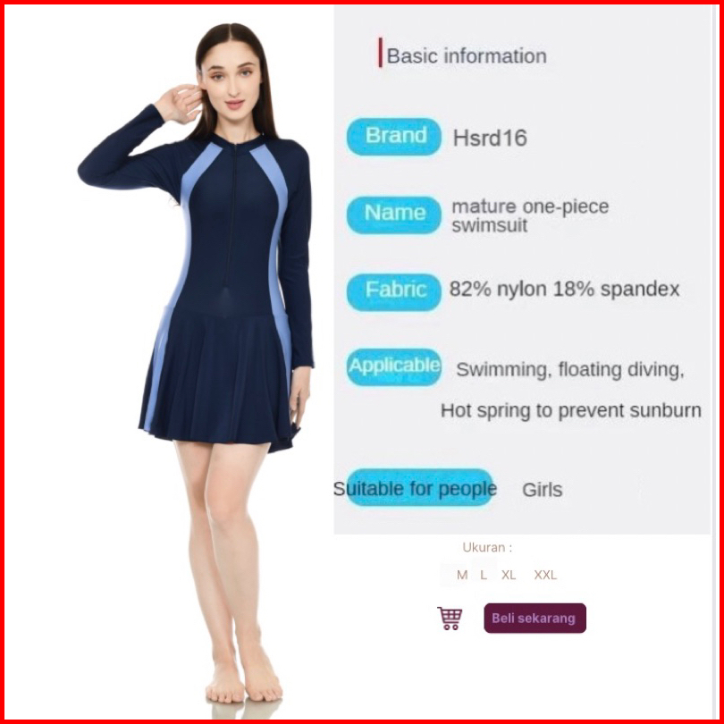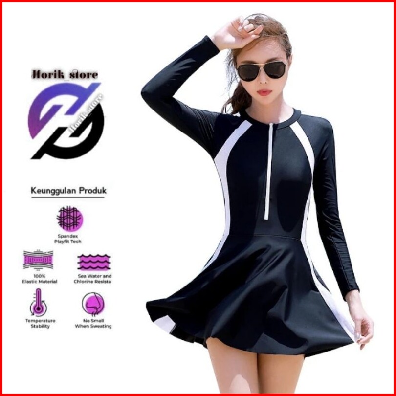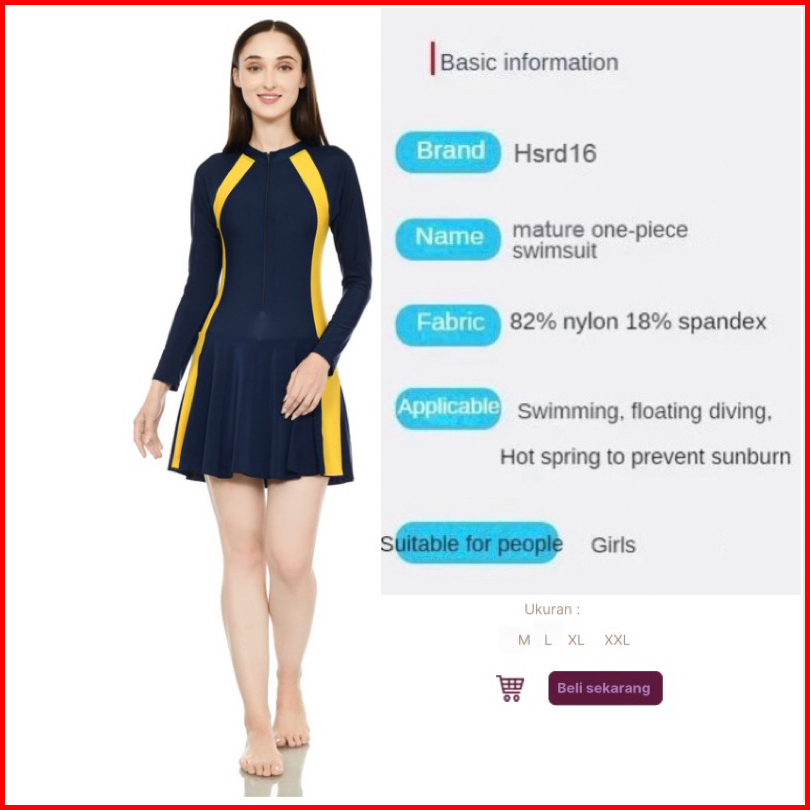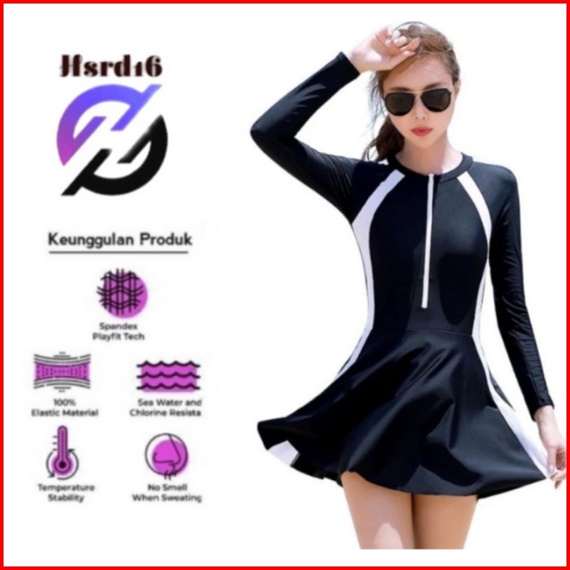 Hsrd16 Summer Swimwear Dress Ladies One-piece Conservative Slim Women Black Long Sleeve Sports Swimsuit