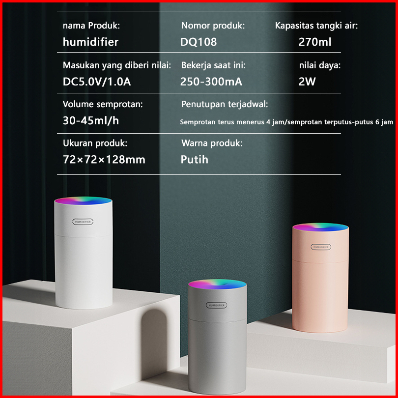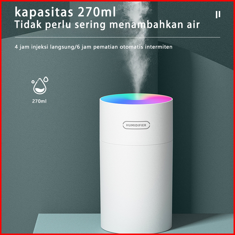 Humidifier Diffuser Mobil Penggunaan Di Rumah Kantor 270ml 7 Color Led