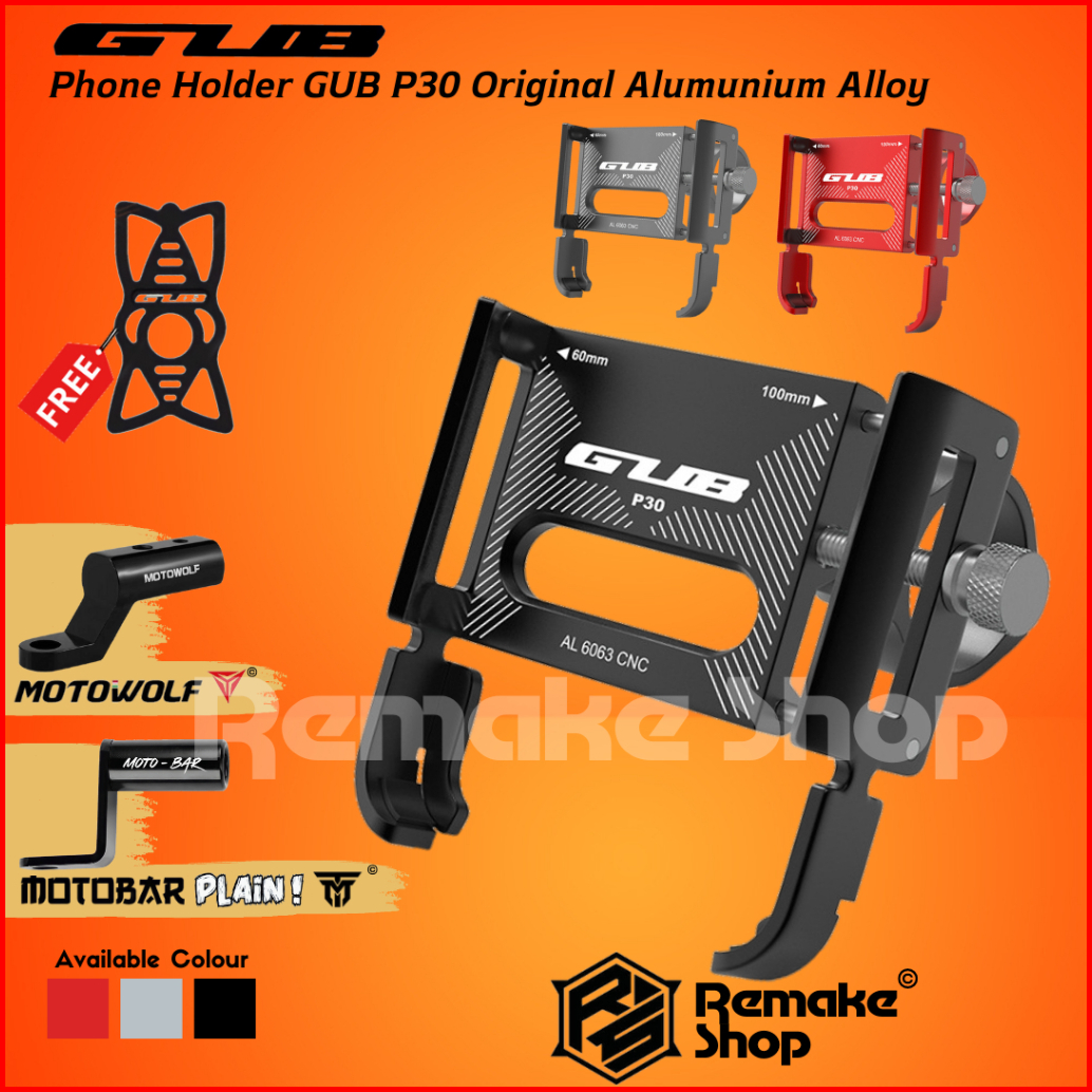 Gub P30 Original Holder Hp Motor Full Besi Alumunium Alloy Breket Tempat Handphone Dudukan Penyangga Tatakan Ponsel Di S