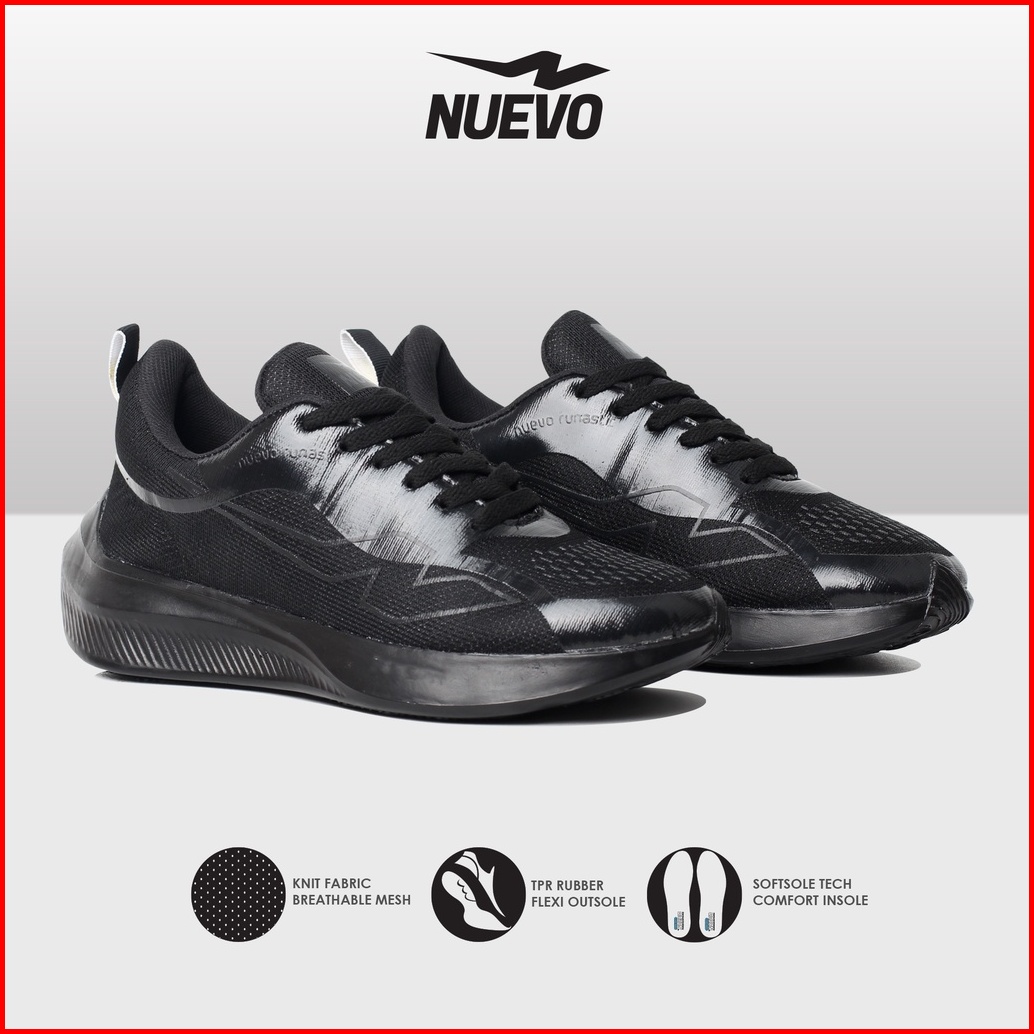 Nuevo - Runastic Full Black Sepatu Olahraga Pria Sepatu Running Sepatu Casual