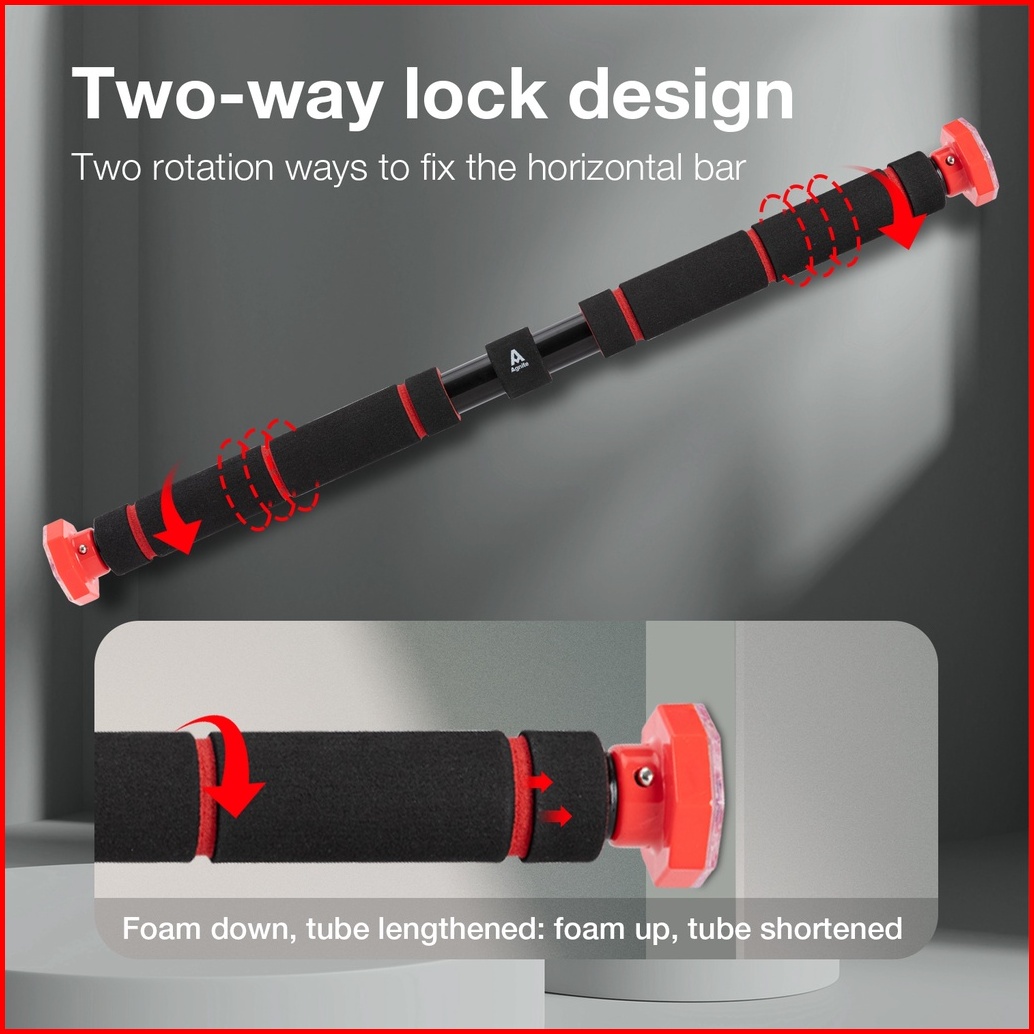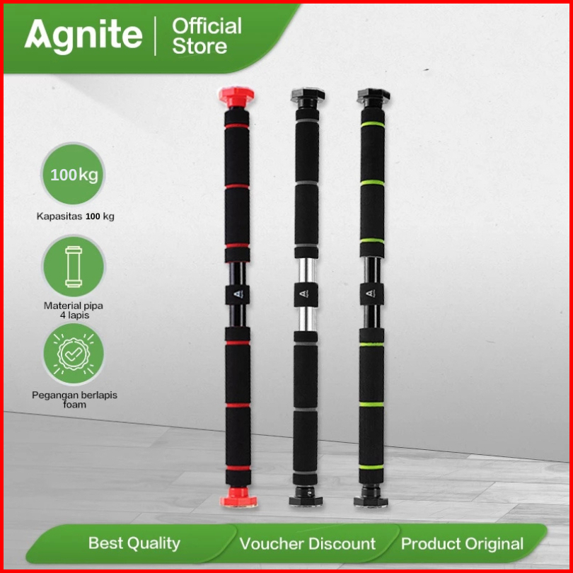 Agnite Adjustable Pull Up Bar Chin Up Doorway Door Bar Iron Gym 60 - 130cm Kapasitas 100 Kg Er06x