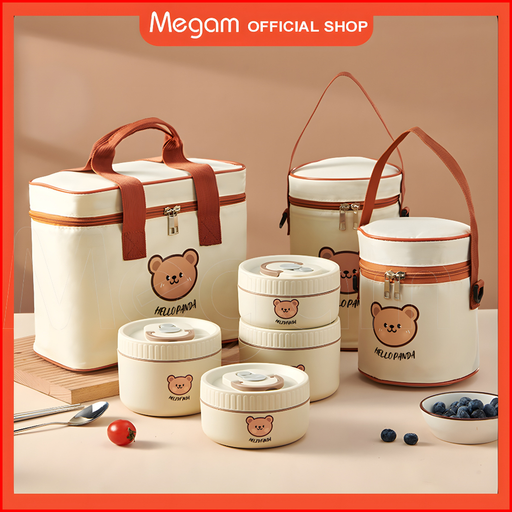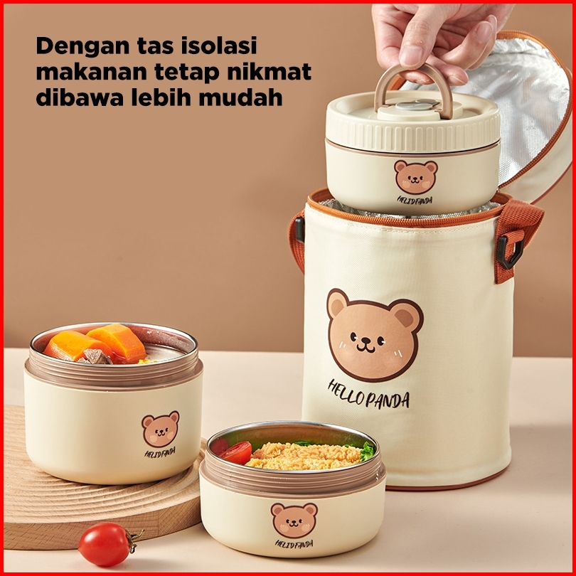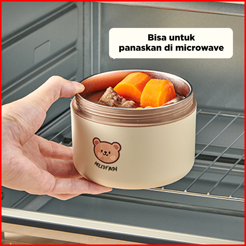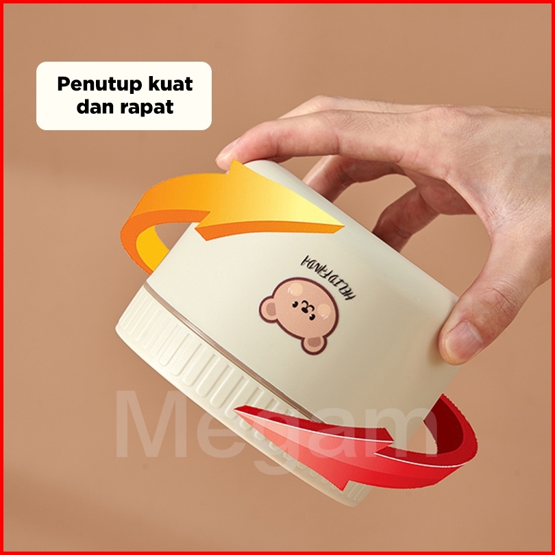 Megam Tempat Bekal Anak Karakter Beruang Lucu Kotak Makan Siang Stainless Steel Tahan Panas Bag Lunch Box Hmb108b
