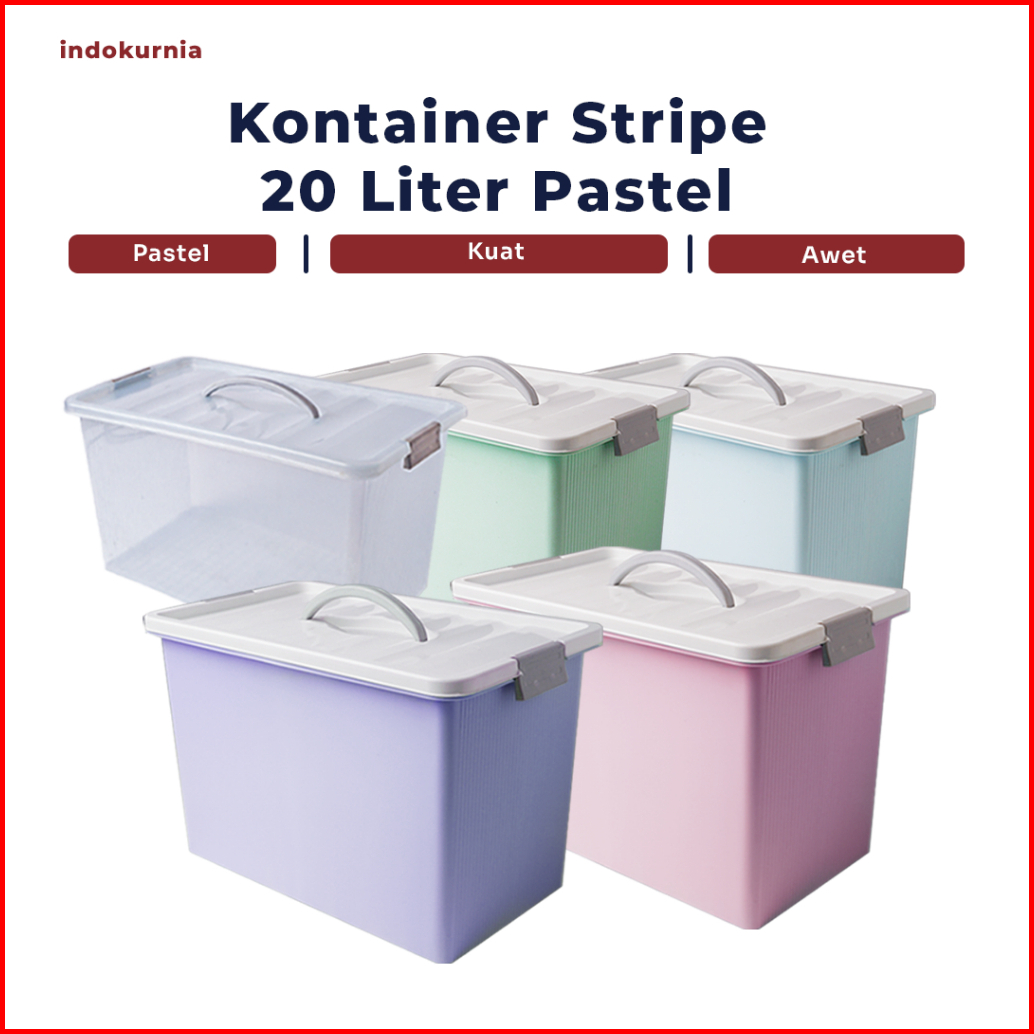 Indokurnia Kontainer Box Stripe 20 Liter Pastel