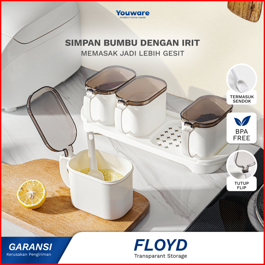 Youware - Floyd Wadah Bumbu Aesthethic Tempat Bumbu Dapur Set Gula Garam Seasoning Box Storage Bpa Free