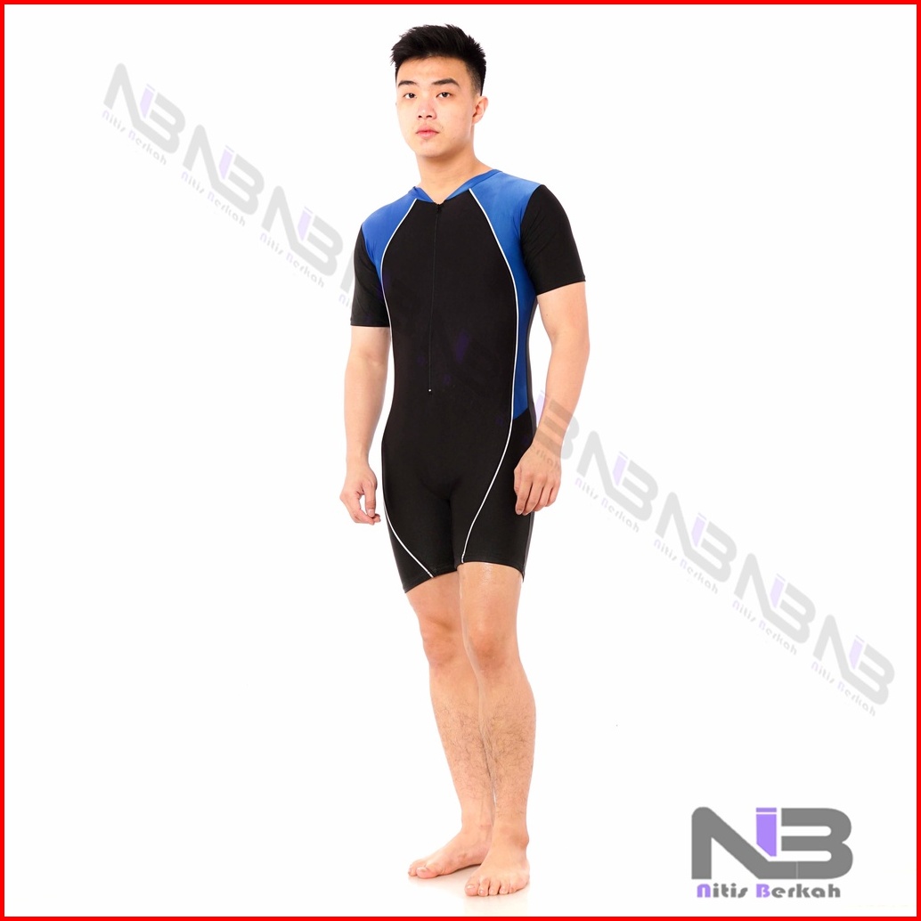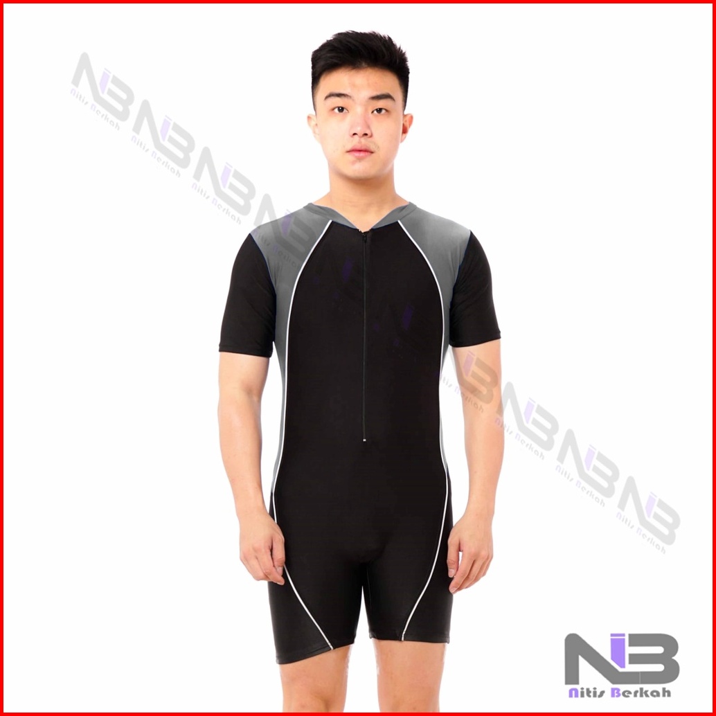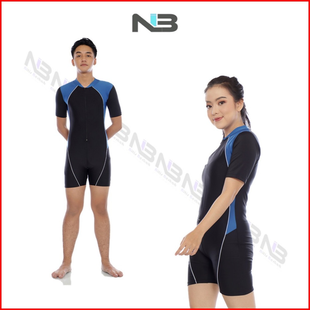 Niber Baju Renang Unisex Remaja-dewasa Baju Renang Terusan Pendek Ziper Depan Bb 40-75kg