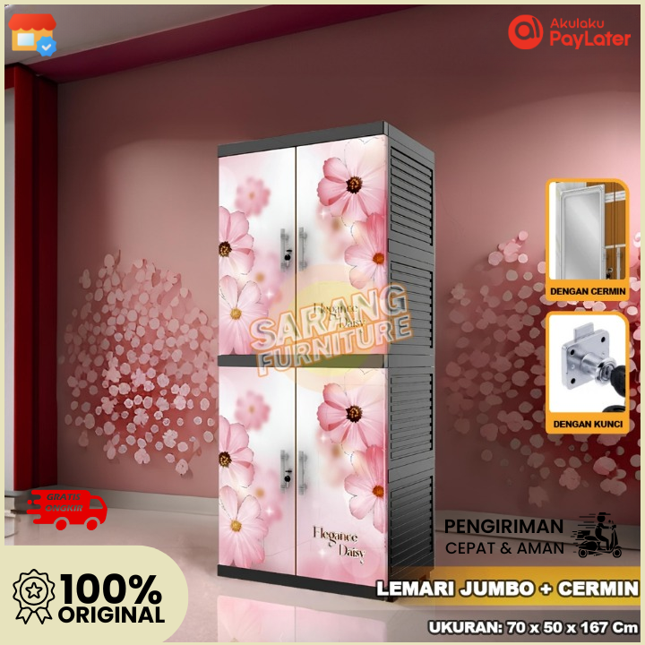 Lemari Plastik Baju Pakaian Naiba MSC Jumbo Besar Kaca Cermin Full Kunci Lemari Modern Serbaguna Murah Berkualitas 2024