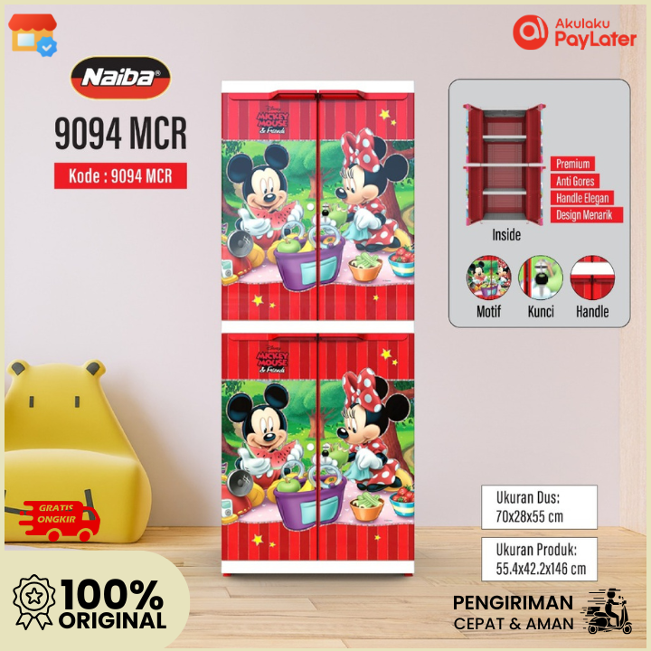 Lemari Plastik Baju Pakaian 4 Susun 4 Pintu NAIBA Mini MSC Karakter Full Kunci Lemari Serbaguna Murah Berkualitas 2024