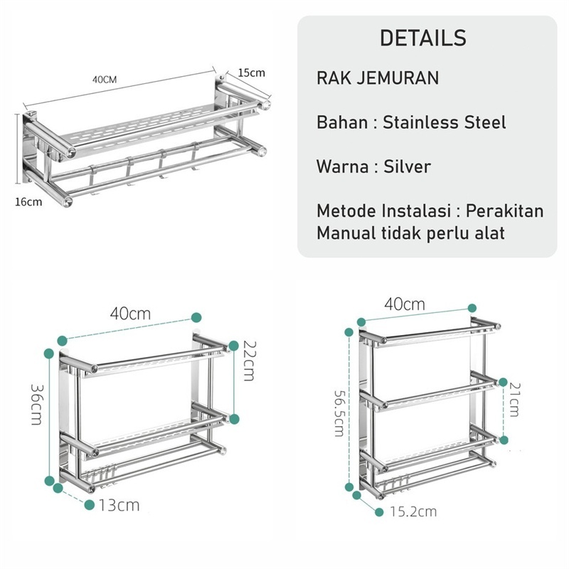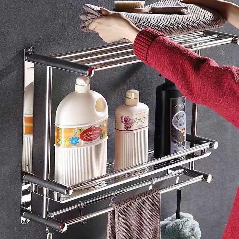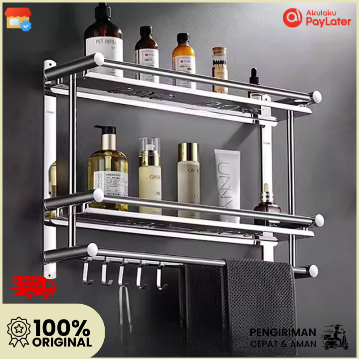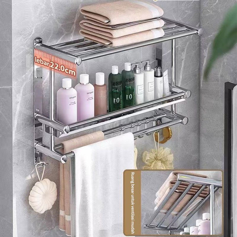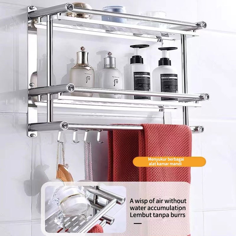 Rak Handuk Kamar Mandi Aesthetic Gantungan Dinding Stainless Steel Minimalist Serbaguna Murah Berkualitas