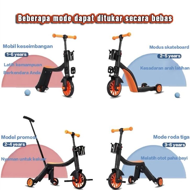 Free Return Qihu Skuter Anak Balance Bike Sepeda Anak Roda 3 Push Bike 8mod Berbilang Anak Laki Laki P