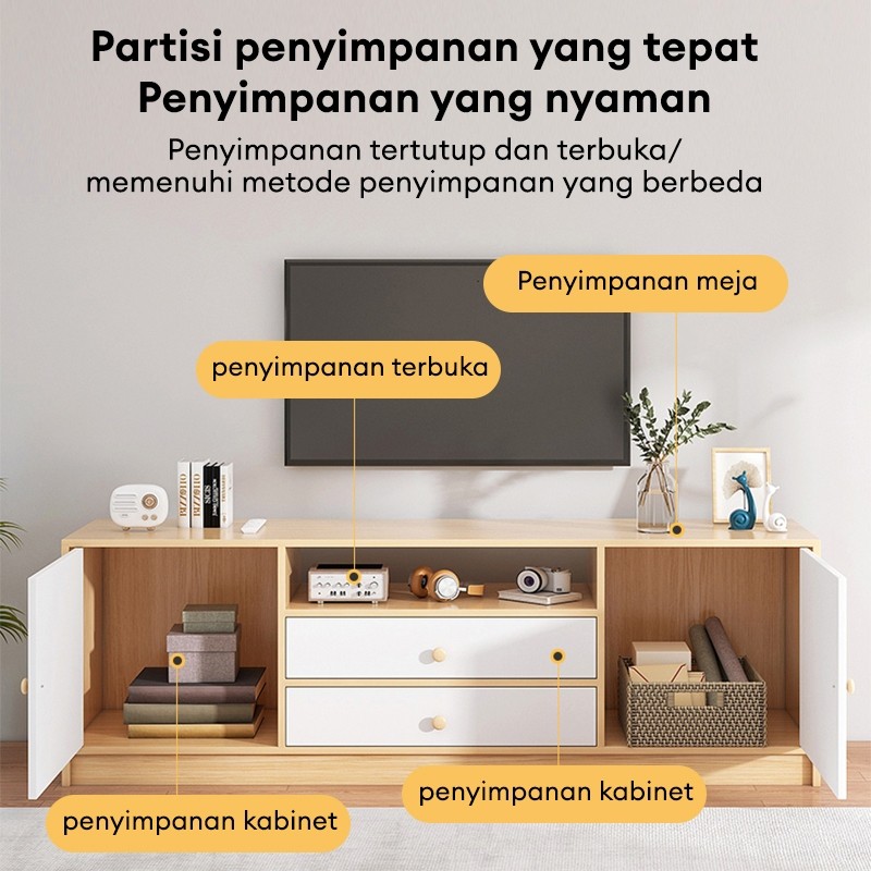 Rak TV Kayu Minimalis Modern 120x140 Cm Maple Putih Meja Tv Ruang Tamu Buffet Serbaguna Murah Garansi 5 Tahun Tanpa Dp