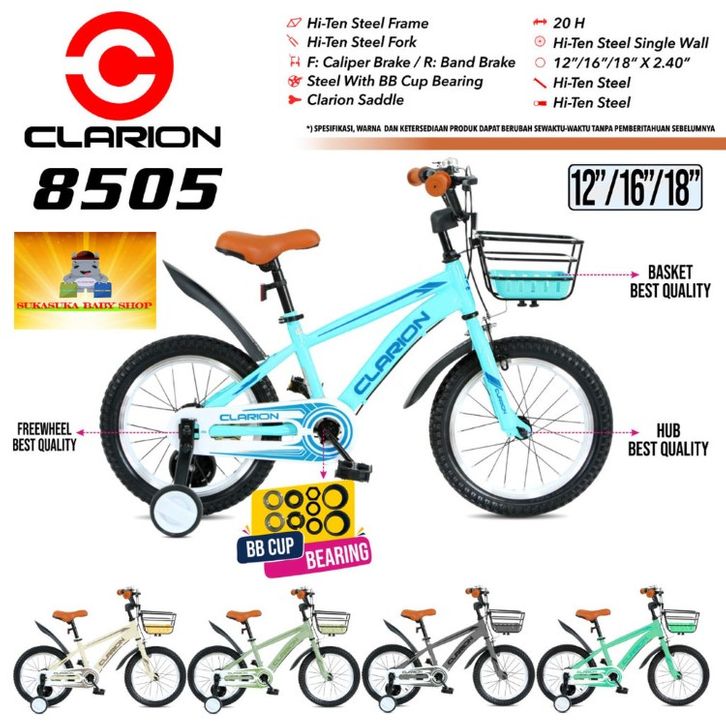 Sepeda Anak Roda Tiga Bmx Clarion 8505 12 , 16 , 18 Inch Ada Bell Keranjang Terbaru Murah Olahraga Terbaru 2024