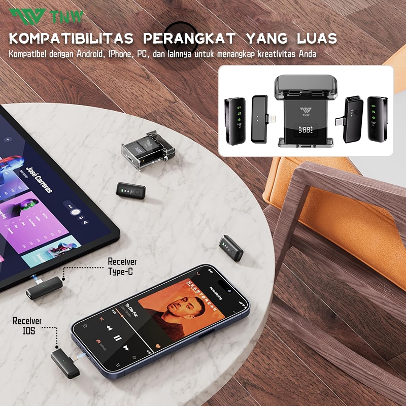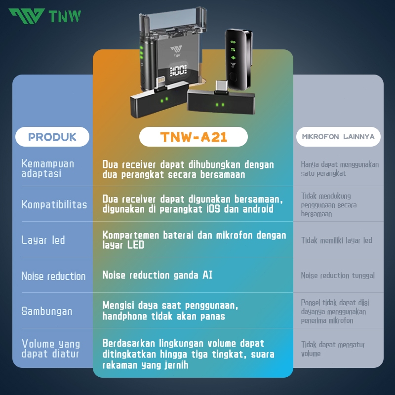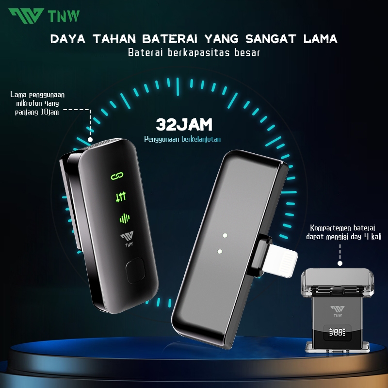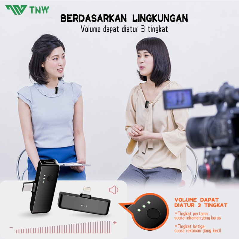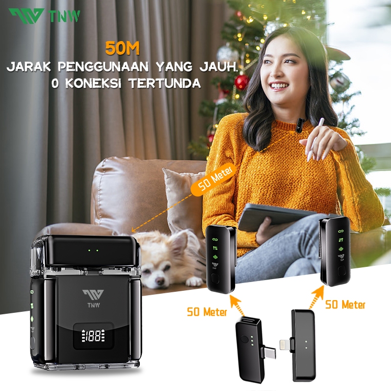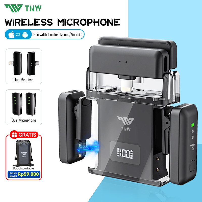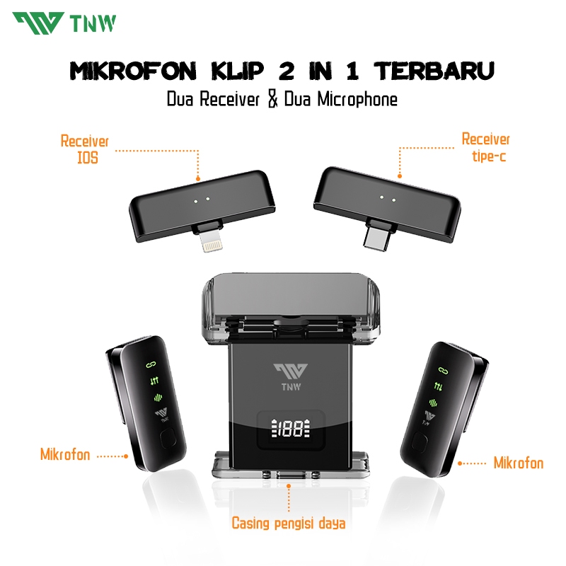 TNW A21 Wireless Microphone Mic Clip on Dual Mikrofon Lavalier Microphone Wireless Mikrofon Ipone dan Charging Case Mic