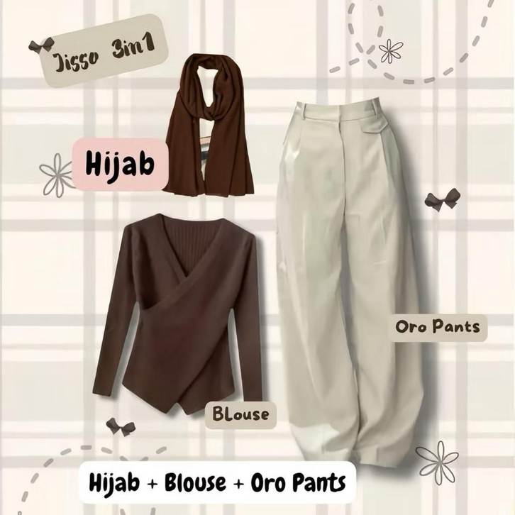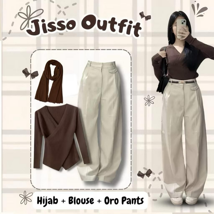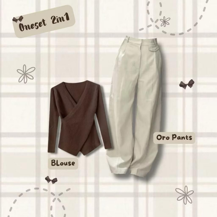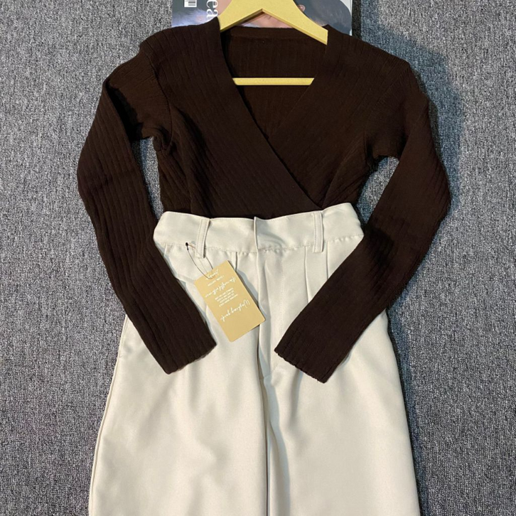 One Set Wanita Kekinian Outfit Remaja Nongkrong Blouse Knit Kulot Hijab Setelan Baju Wanita Dewasa Ootd Ngopi Terlaris