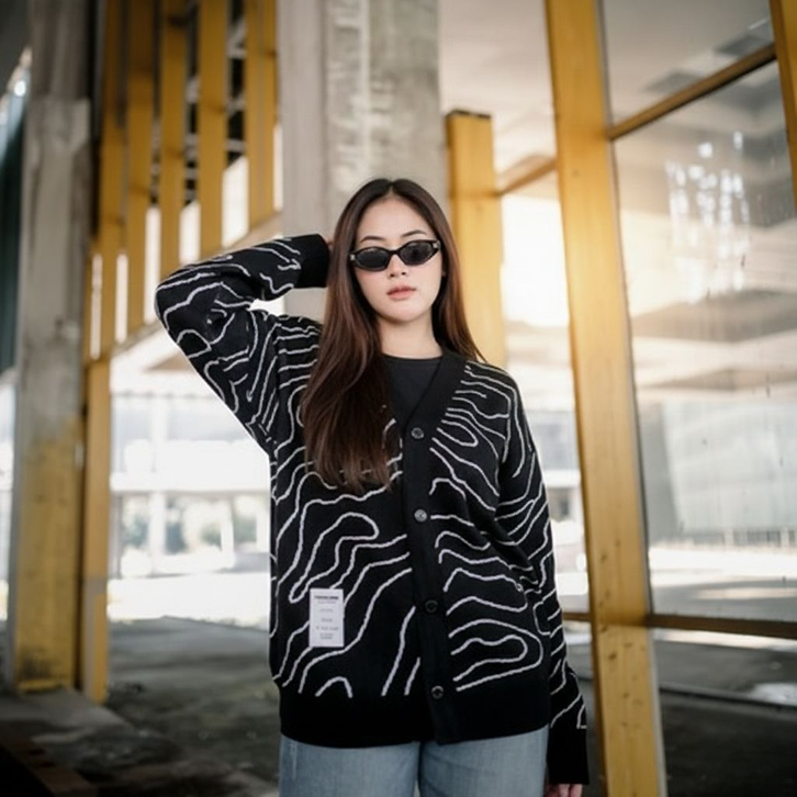 TIMEBOMB CARDIGAN KNITWEAR WAVE WHITE BAJU PRIA KAOS LENGAN PANJANG PRIA BAJU SWEATER KEKINIAN KAOS DISTRO KEREN