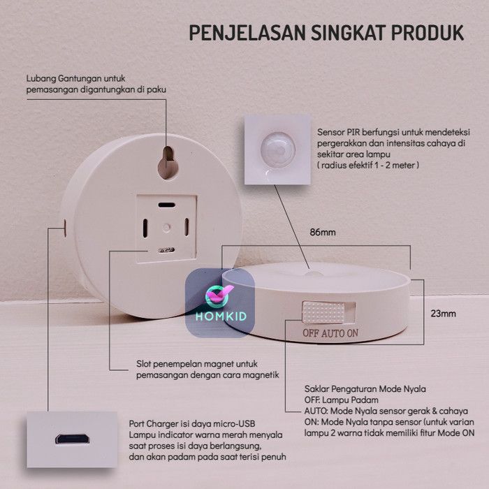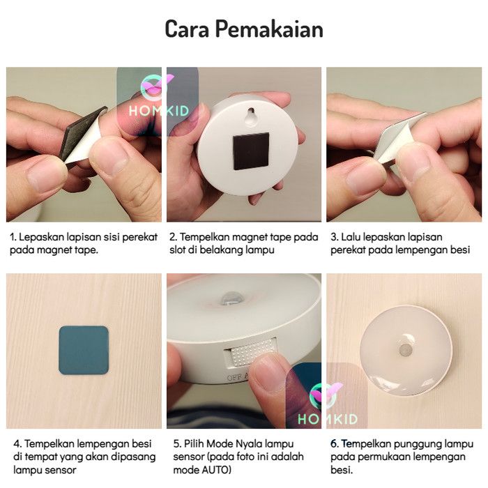 Lampu Sensor Gerak Tidur LED Otomatis Darurat Dinding Tempel Portable