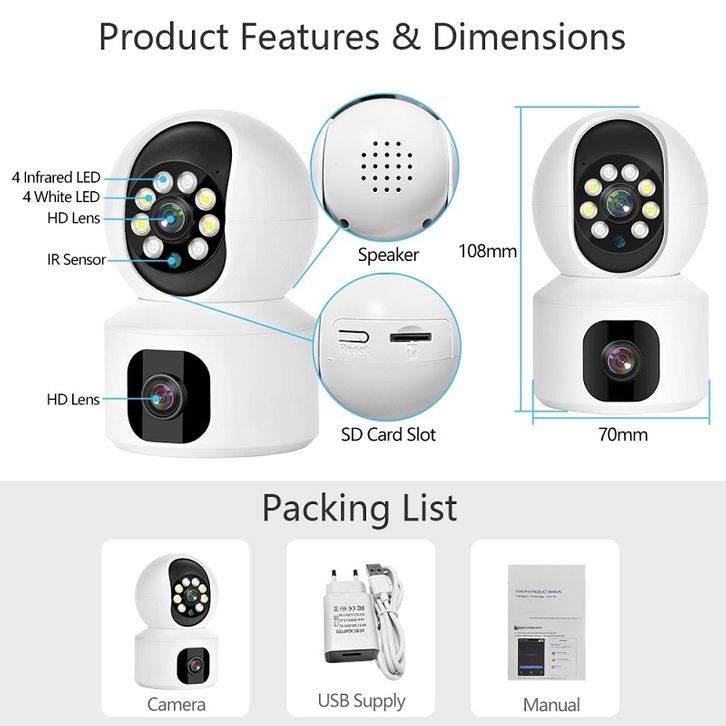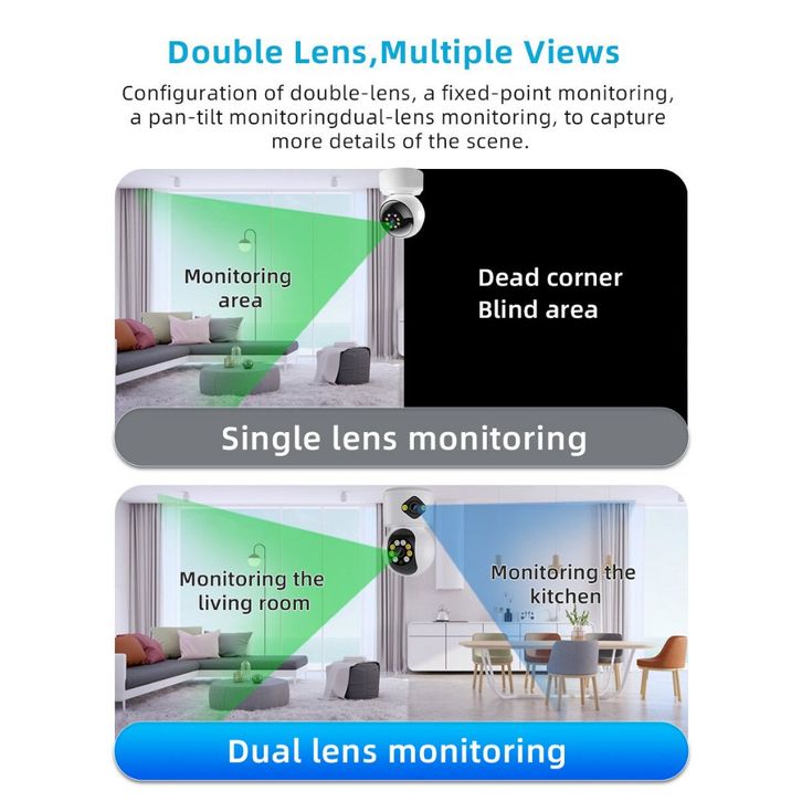 Dual Lens V380 PRO CCTV Camera to cellphone Full HD 1080P 8 million pixels Wireless WiFi two-way audio Night Vision Secu