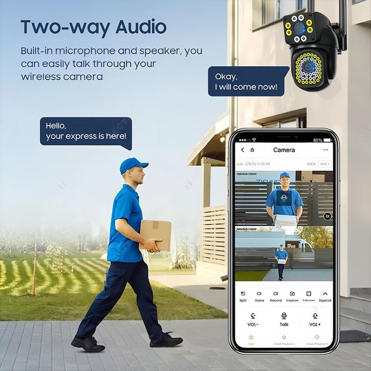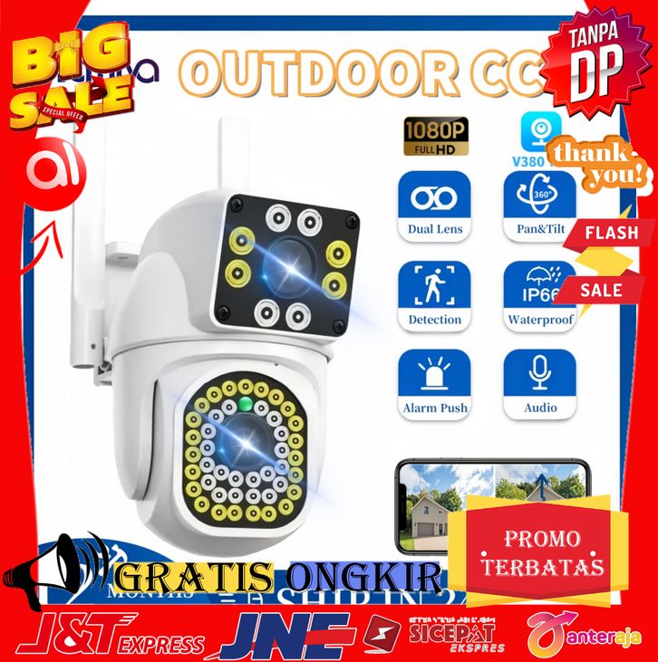 YAMIYA V380 Pro Dual Lens Outdoor CCTV Kamera Full HD WiFi Connect to Cellphone 360° Panoramic Security