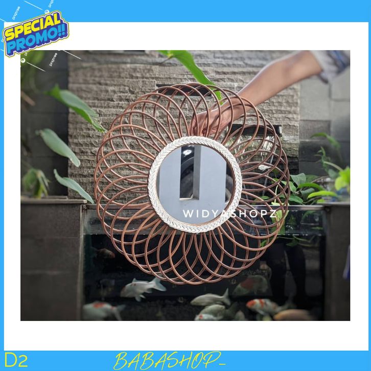 KACA CERMIN GEMOI MINIMALIS ROTAN SINTETIS HIASAN DINDING RUANGAN ESTETIK AESTHETIC