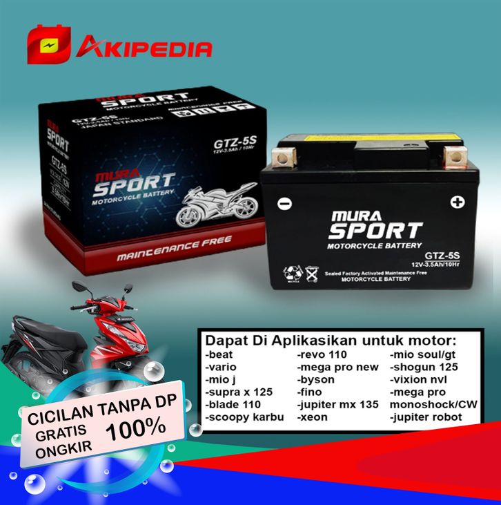 Aki motor murah honda beat , vario 110 old , mio new series accu GTZ5S aki murasport berkualitas