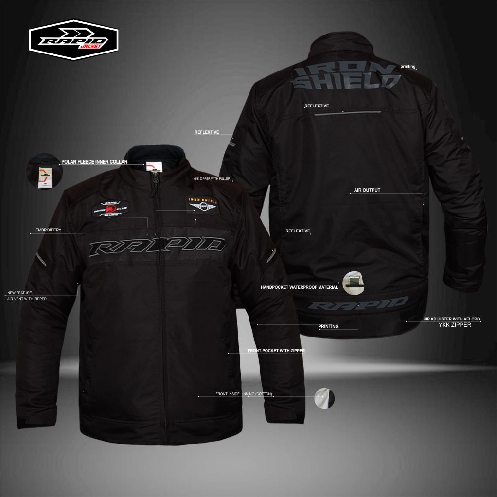 Jaket motor touring premium RAPID IRONSHIELD jacket reflektif, berventilasi, anti air dan anti angin