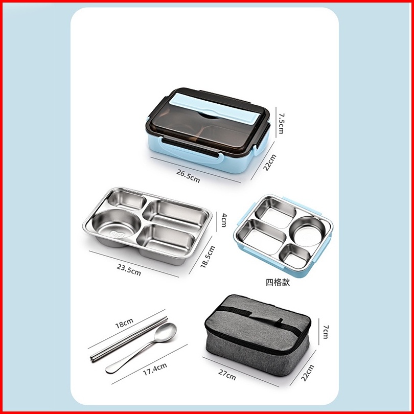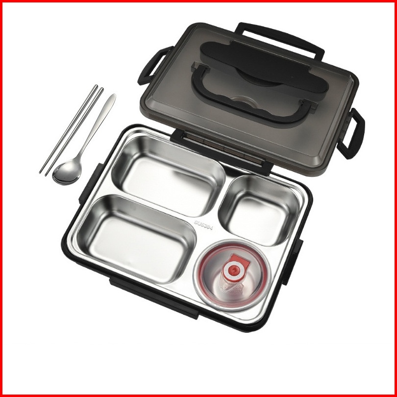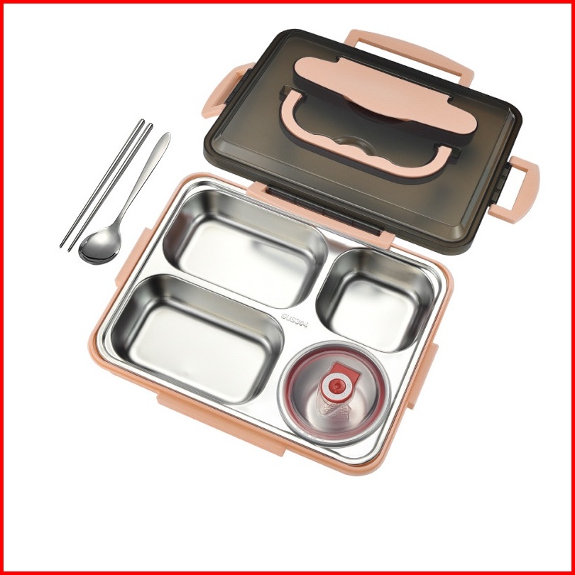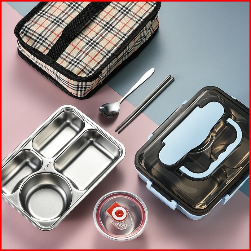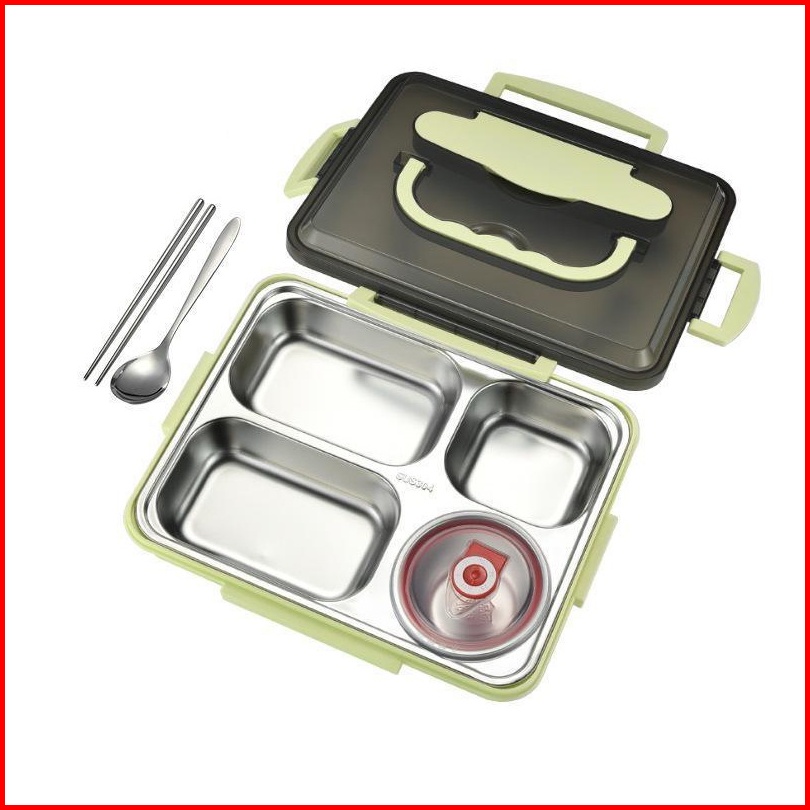 Livetai Kotak Makan Siang Stainless Steel 304 Tahan Suhu 4 Kompartemen Kotak Makan Siang Mangkuk Sup