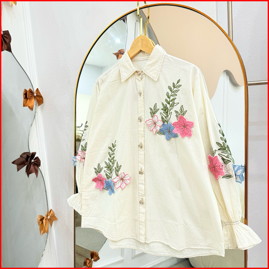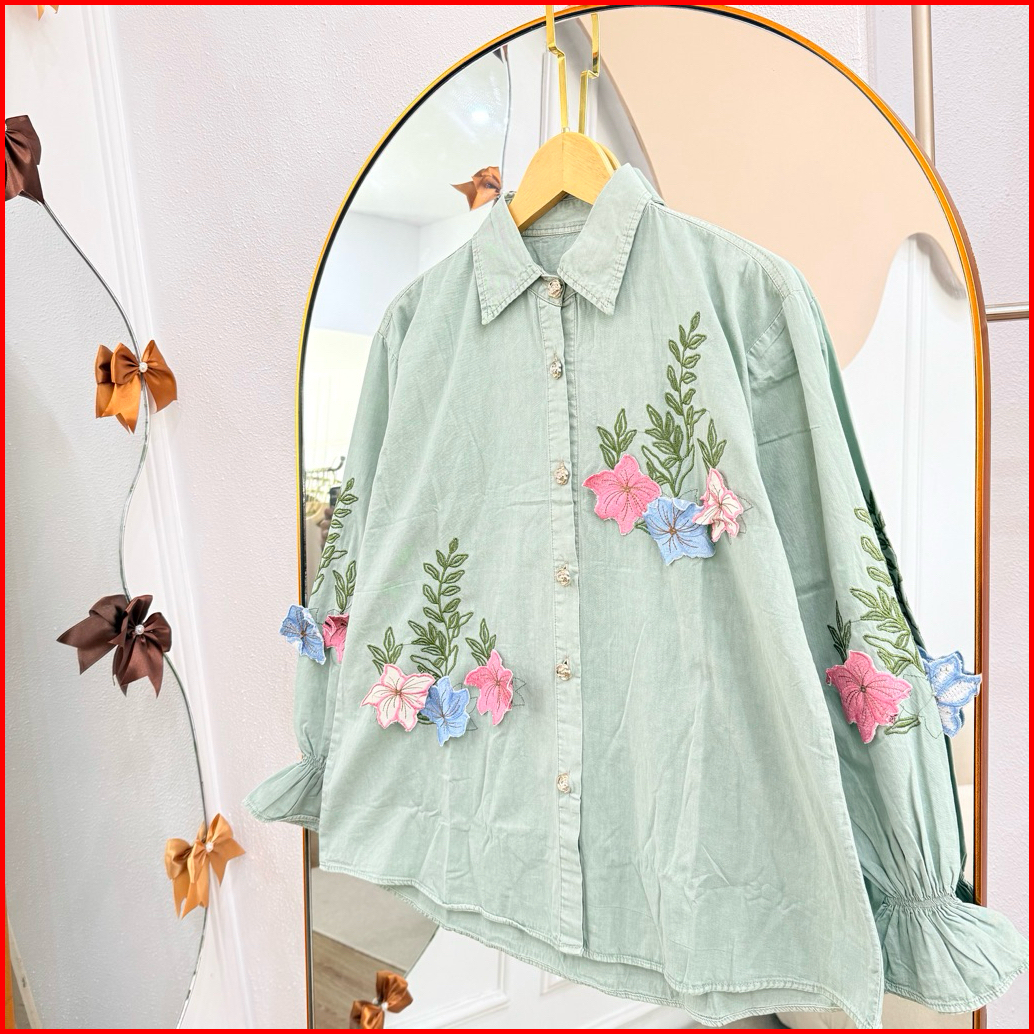 Melissa Kemeja Bordir Bunga Hijab Bahan Denim By Shemangat Id