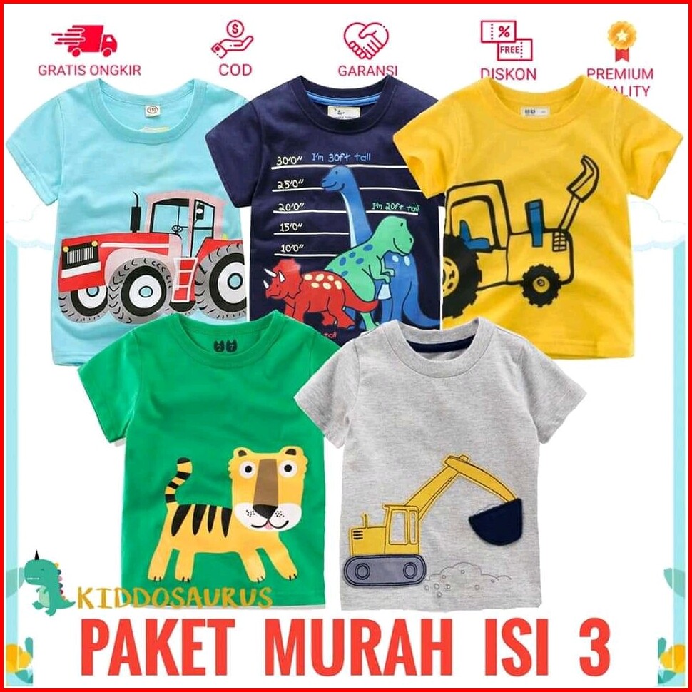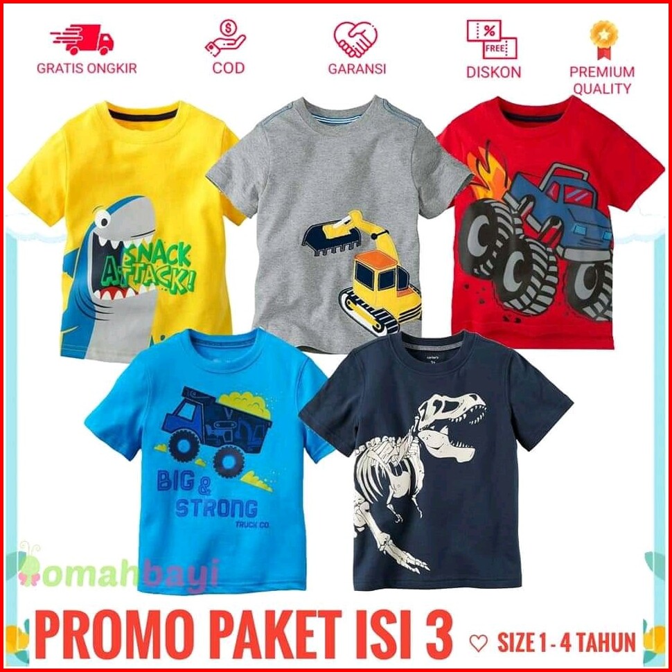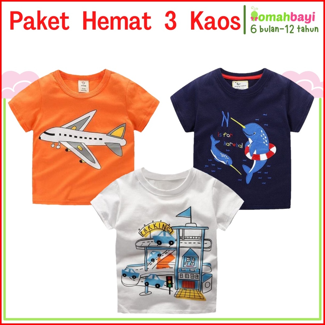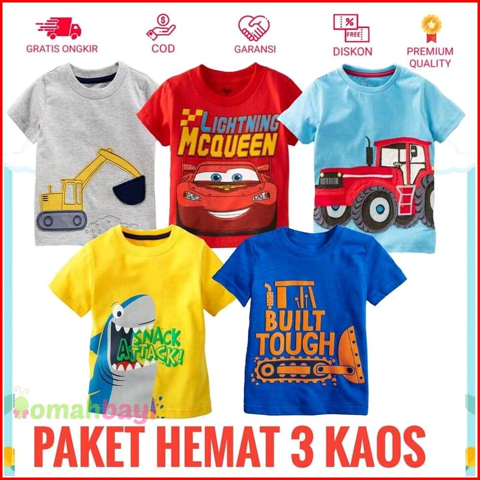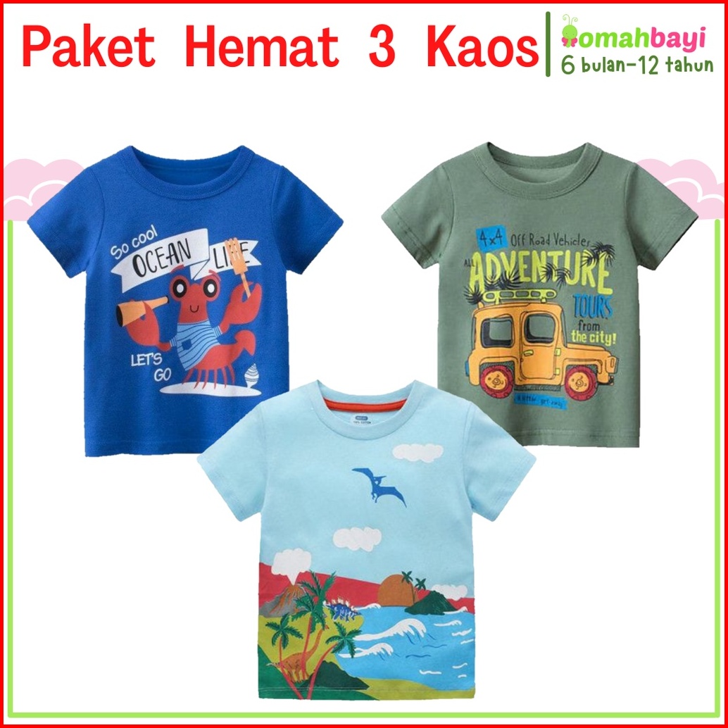 Omahbayi - Termurah Paket Hemat Isi 3 Kaos Anak Cowok Baby Victory X Kiddo 6 Bln - 12 Tahun Motif Cerah Random