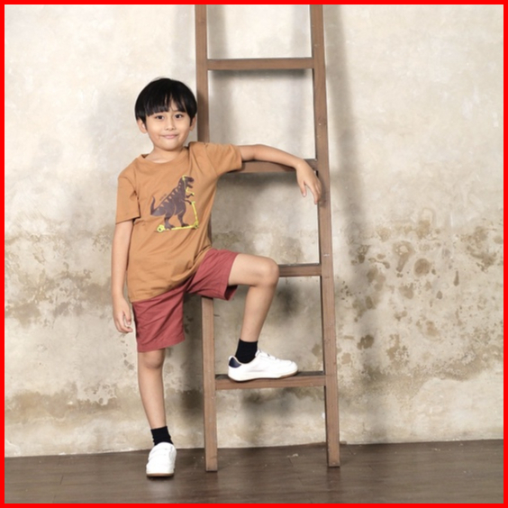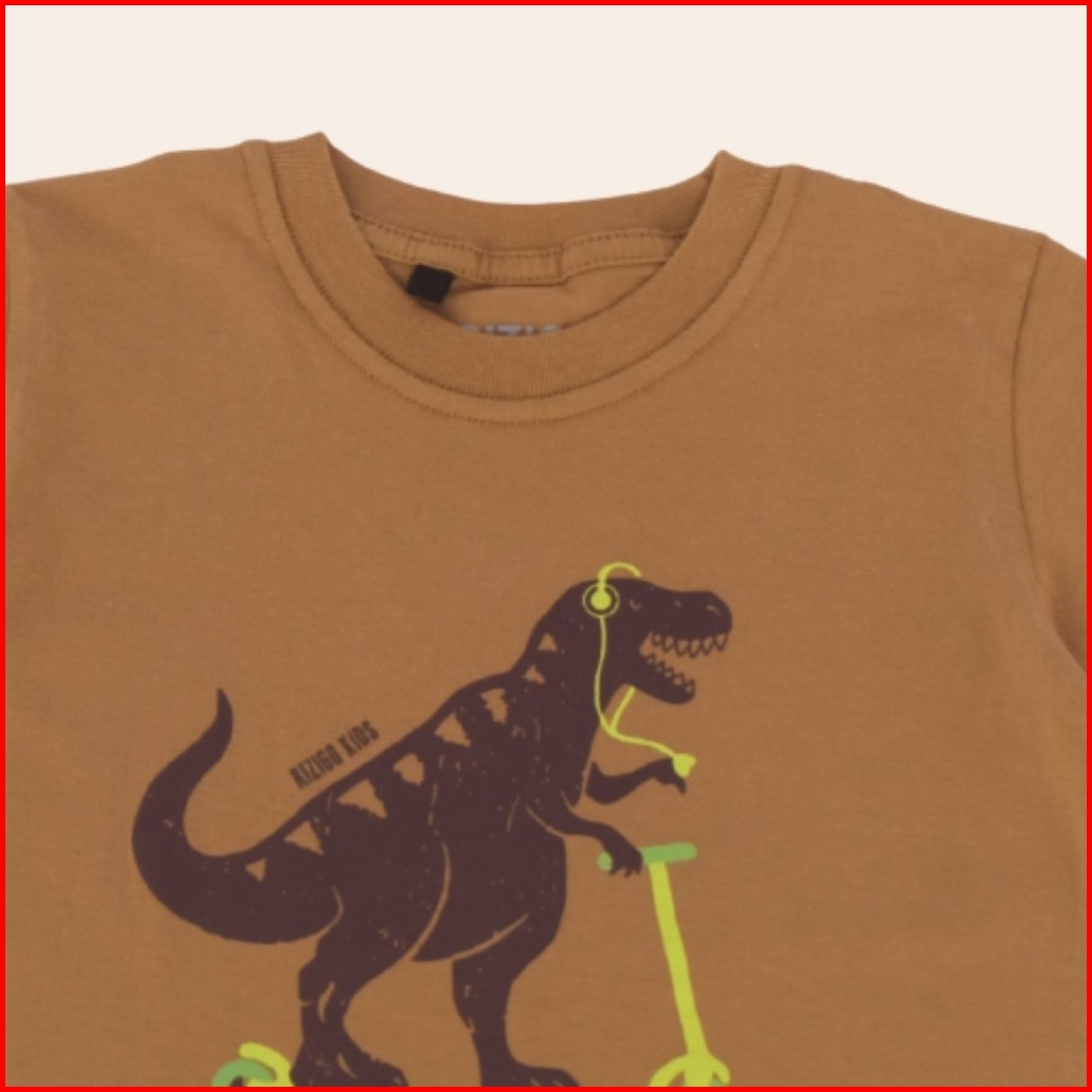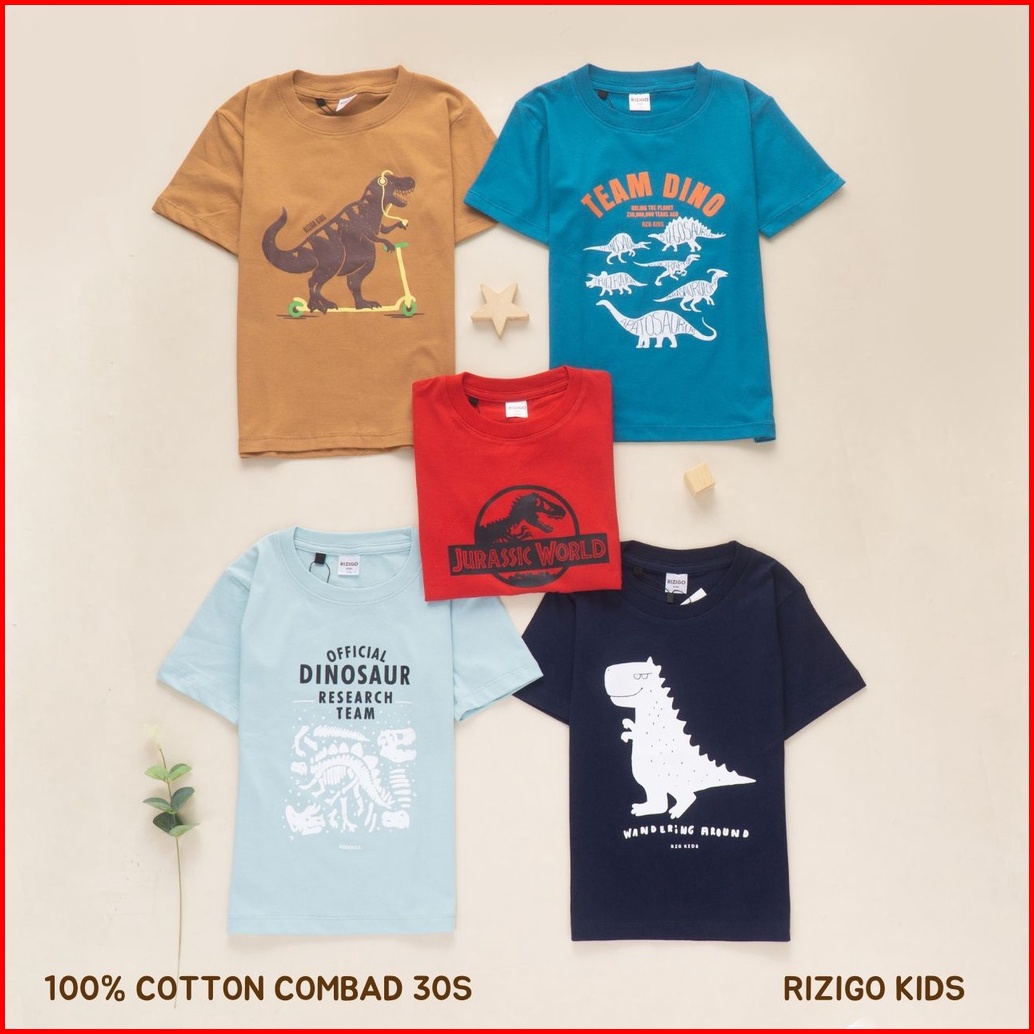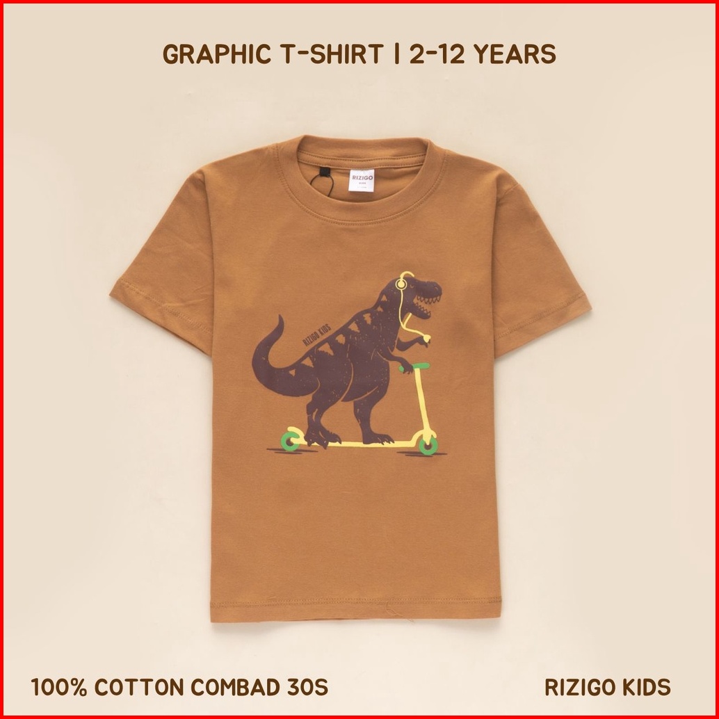 Rizigo Kids Baju Kaos Anak Laki-laki Dinosaurus Scooter Lengan Pendek Katun Adem Ukuran 212 Tahun