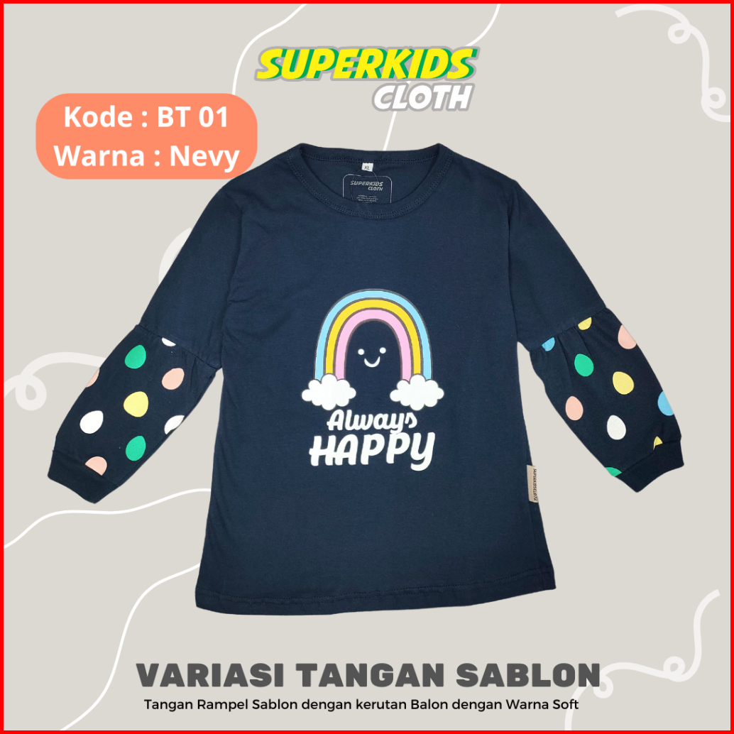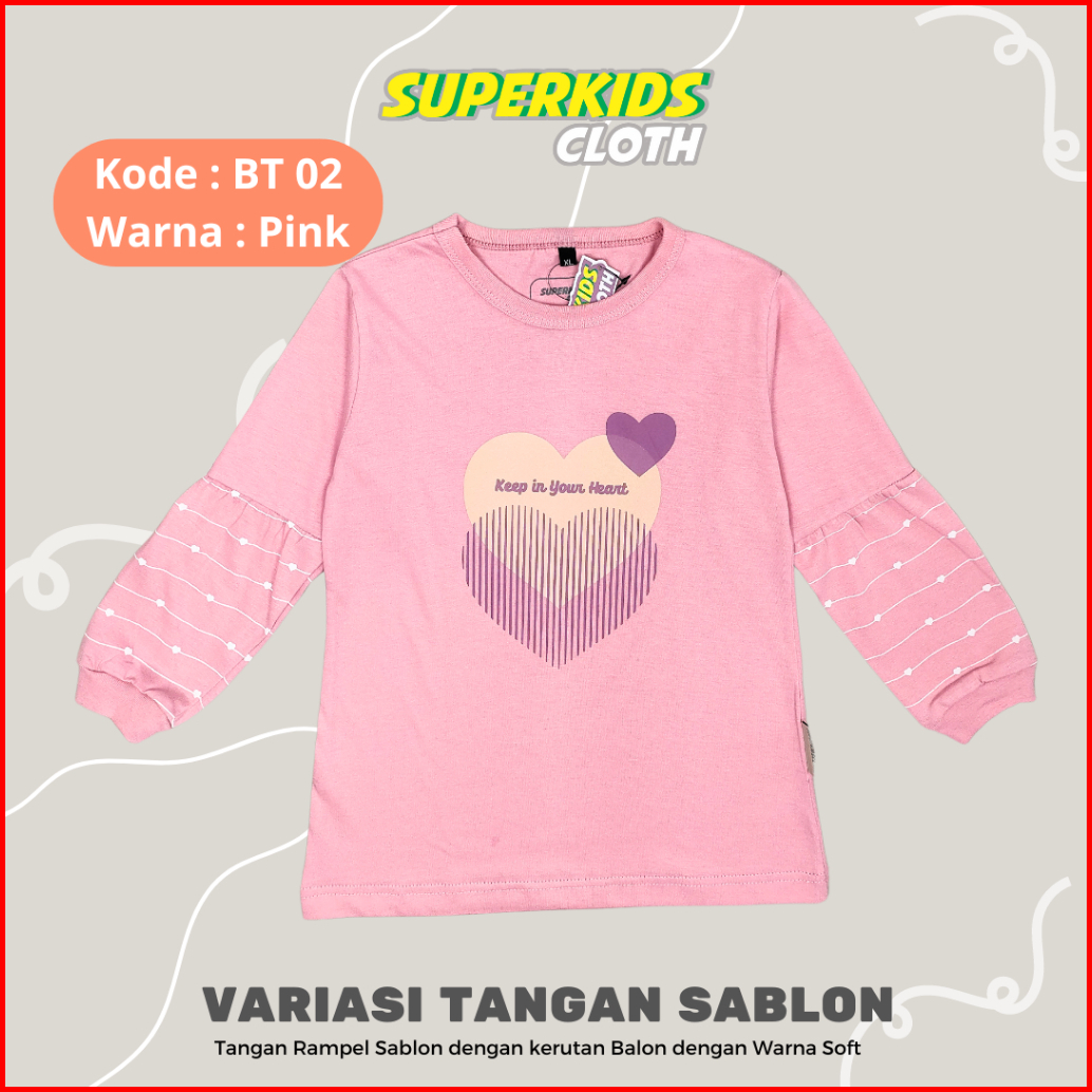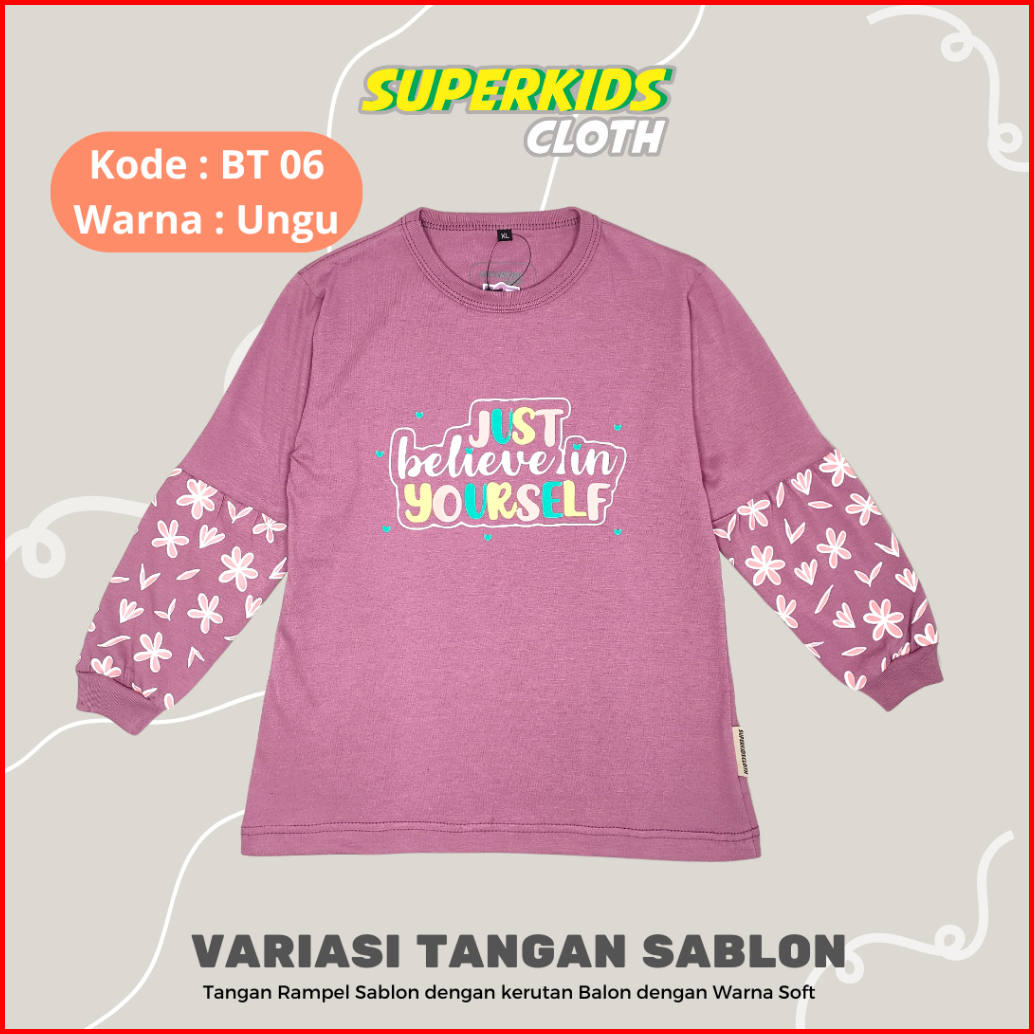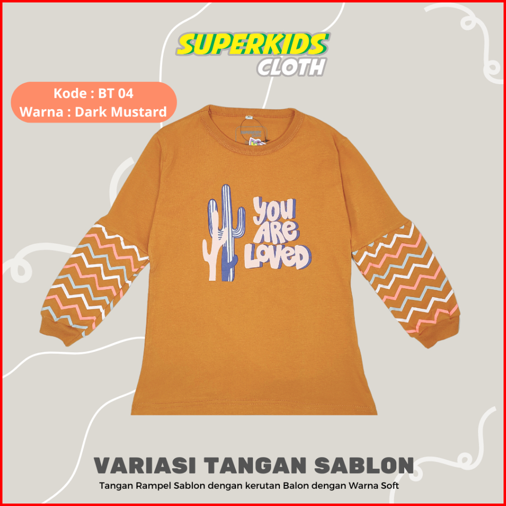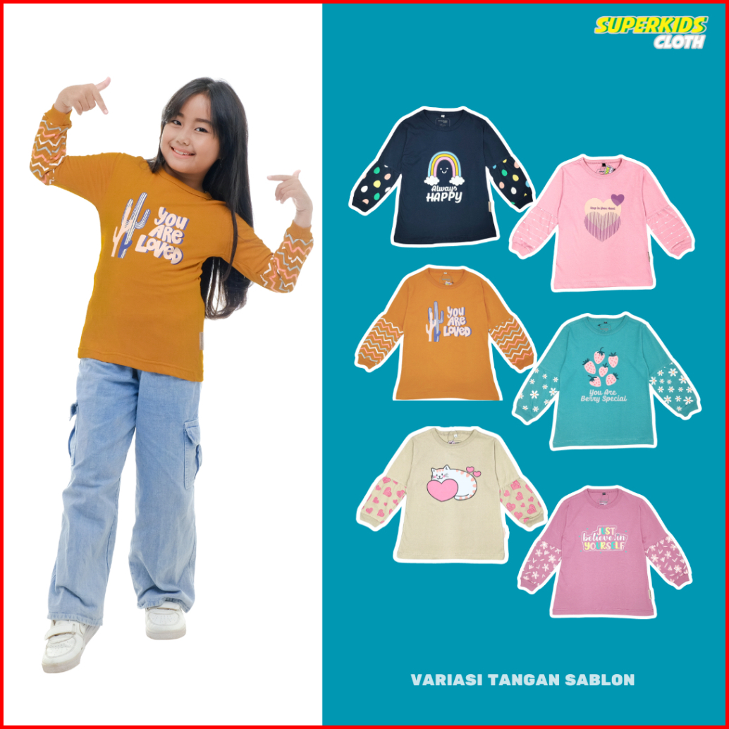 Baju Anak Perempuan Lengan Panjang Ruffle Tangan Sablon Motif Lucu Kaos Anak Perempuan Lengan Panjang Rampel Kaos Anak C