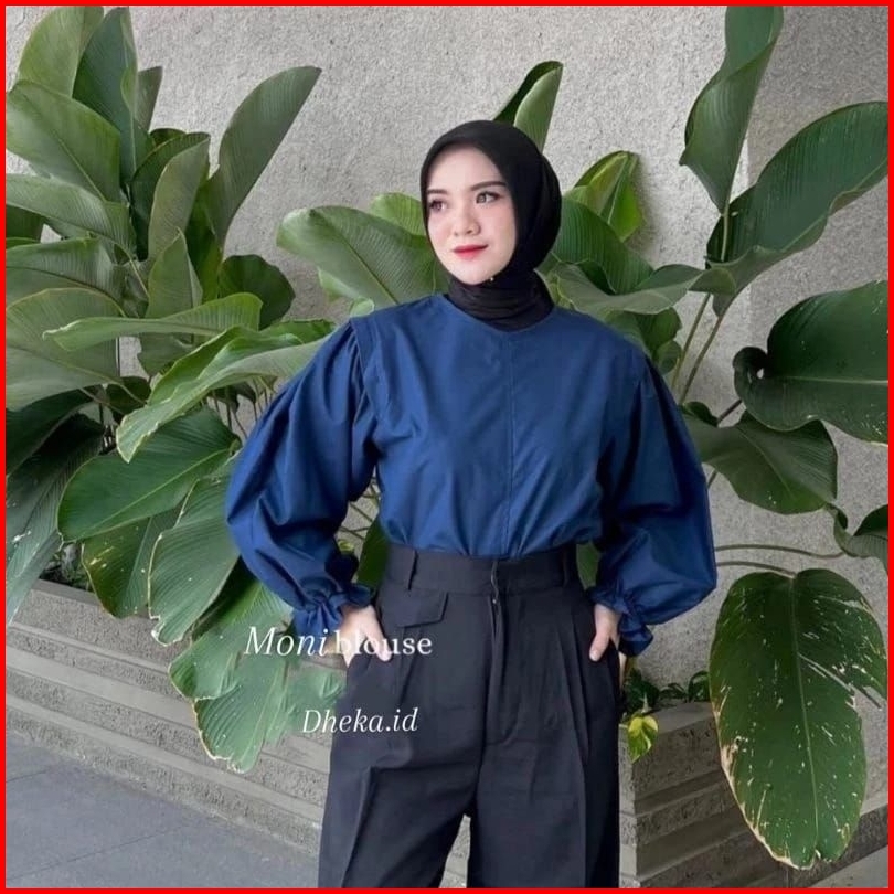 Moni Blouse Katun Poplin Atasan Wanita Lengan Balon