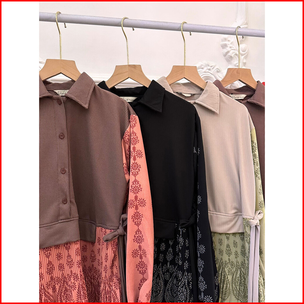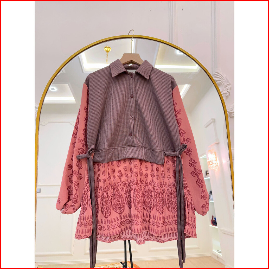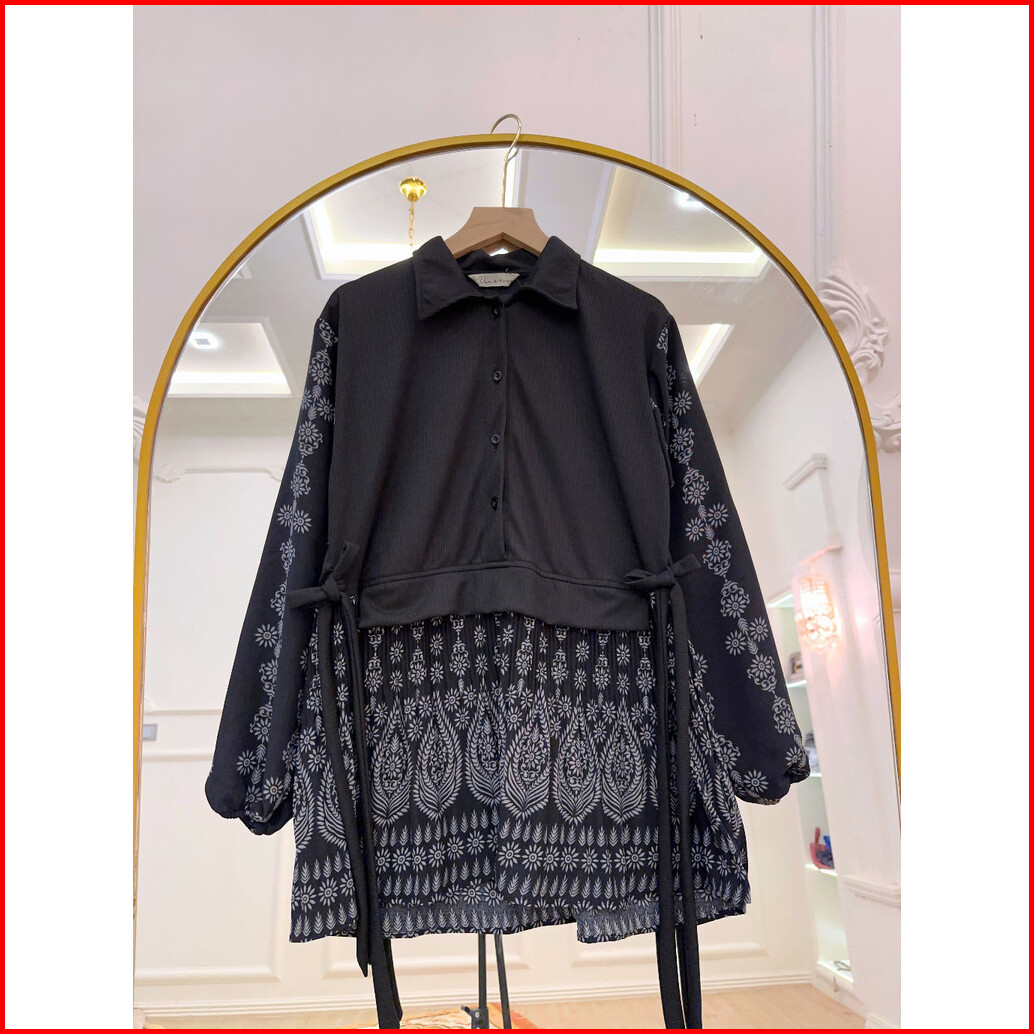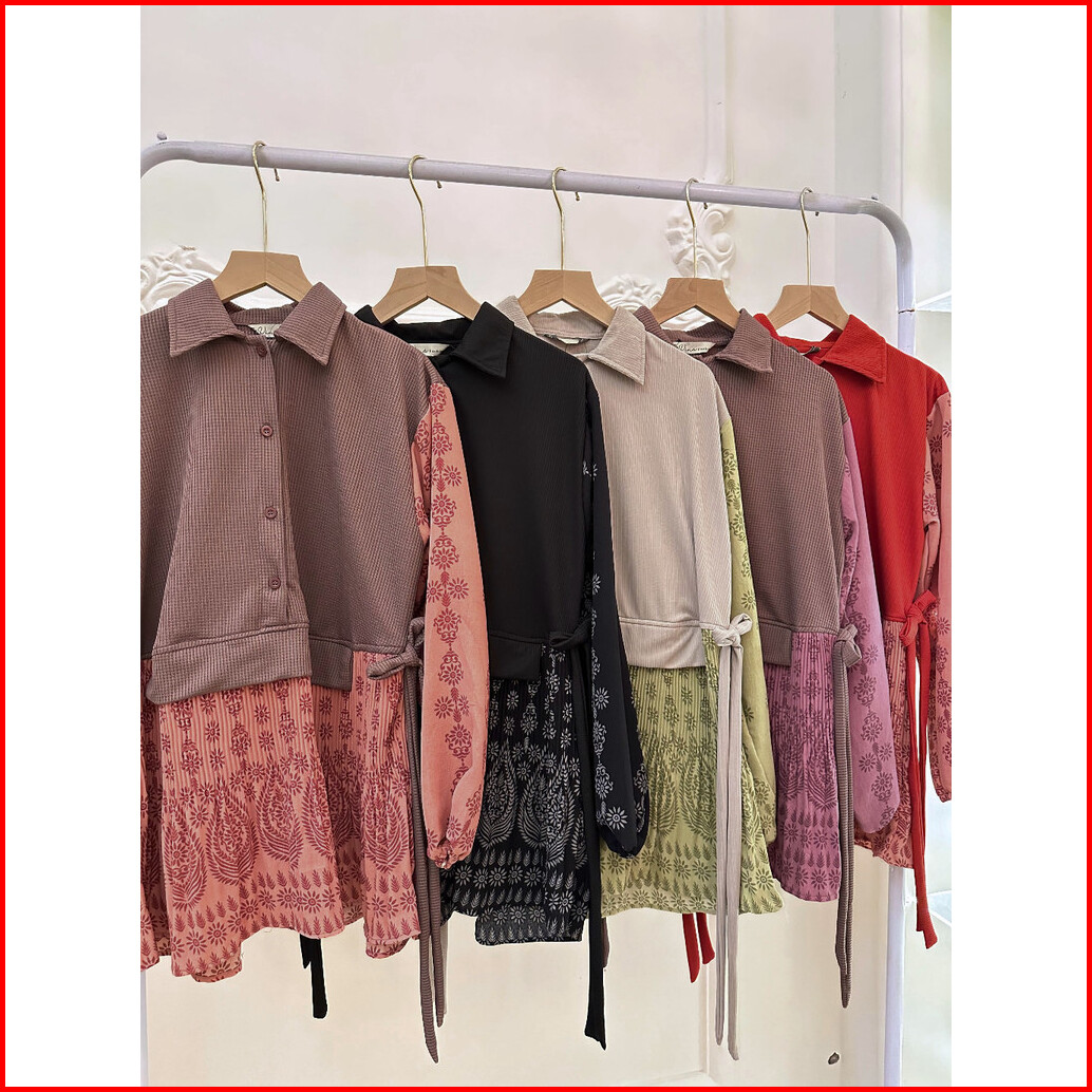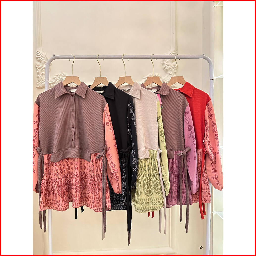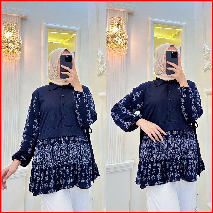 Sabrina Ii Blouse Chic Mix Pleats Blouse Knit Mix Blouse Motif Etnik Plisket Kombinasi Knit