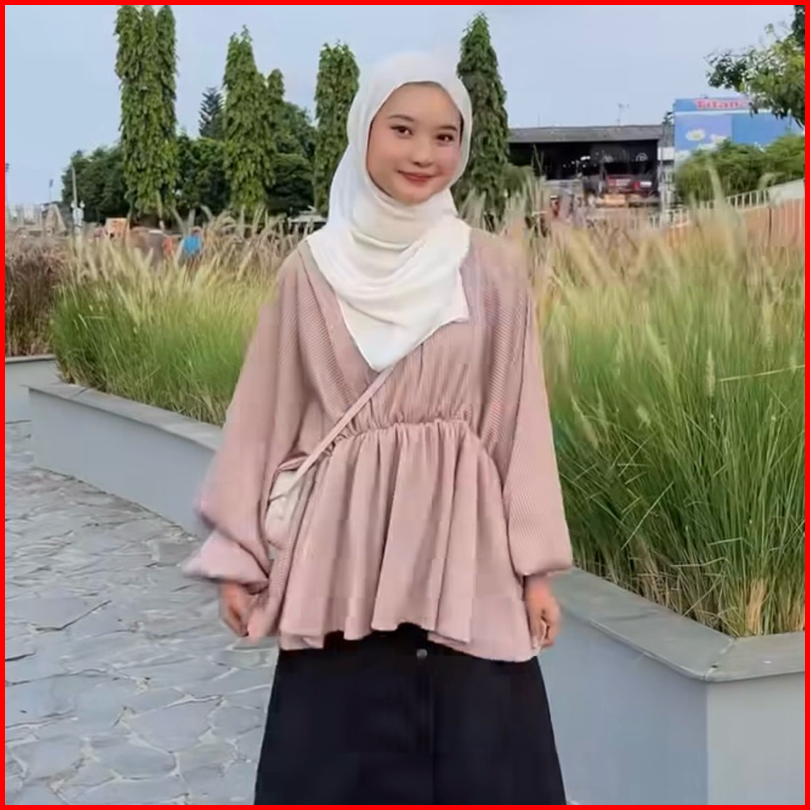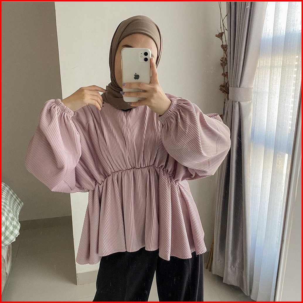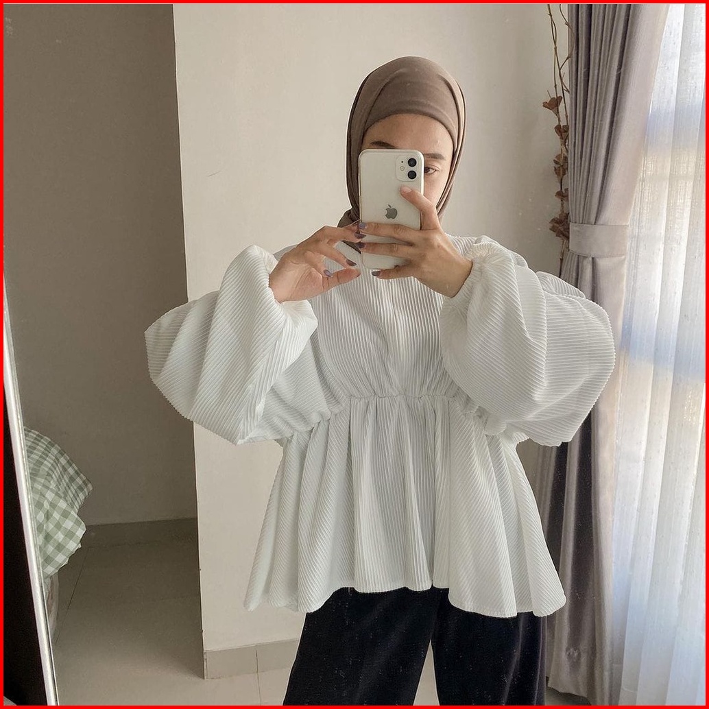 Syamaita Original Heira Pleats Blouse Busui Dan Wudhu Friendly Baju Putih Anti Terawang