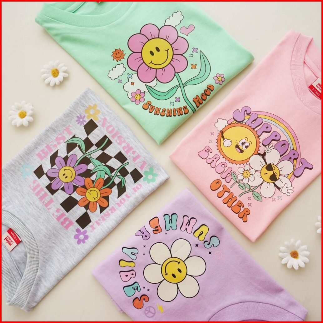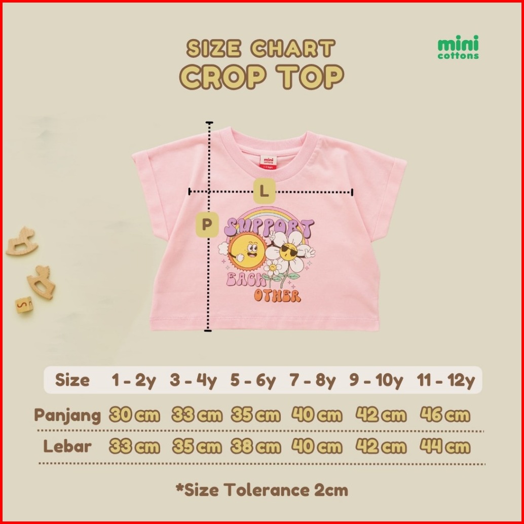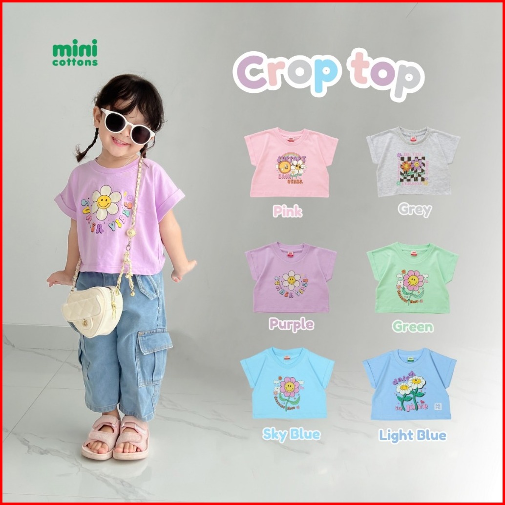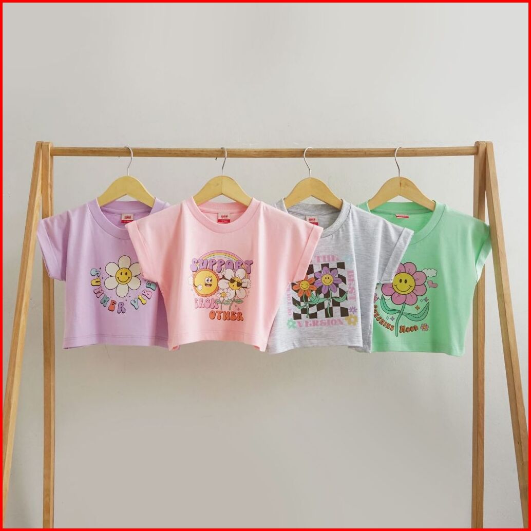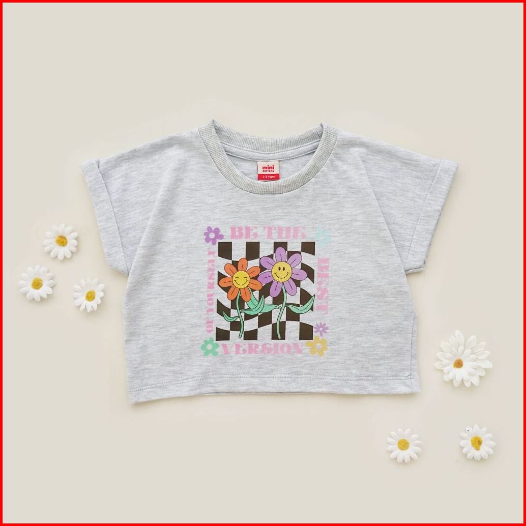 Mini Cottons Retro Graphic Kaos Crop Top Anak Perempuan 1-12 Tahun 100 Katun