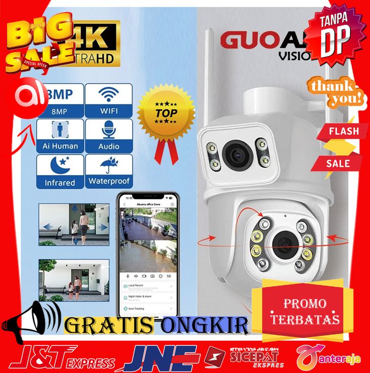 Guoan Vision 8MP Kamera CCTV IC see Nirkabel Luar Ruangan Dual-Lensa Suara AI Deteksi Manusia Alarm