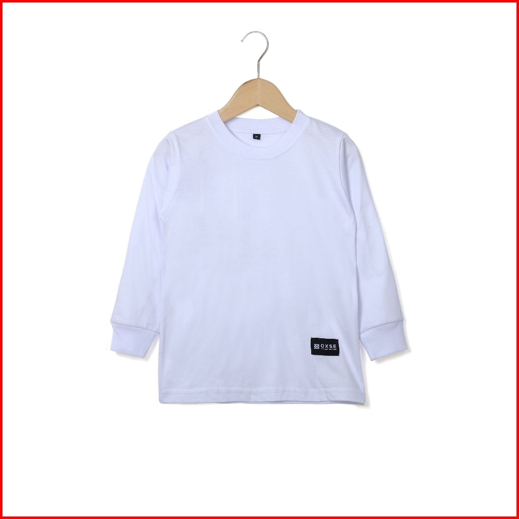 Oxse - Kaos Polos Anak Lengan Panjang Laki-laki Perempuan Combed 20s - Forsep White