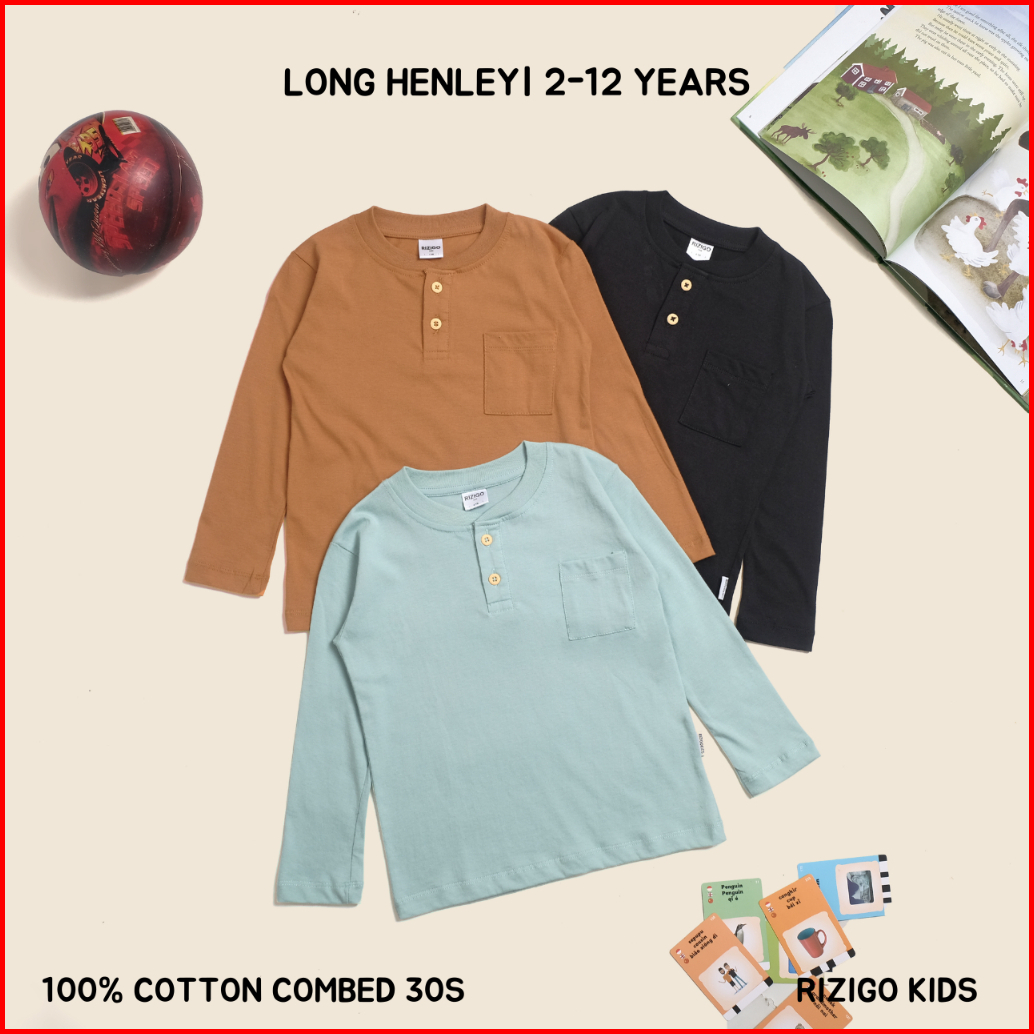 Rizigo Kids Henley Kaos Anak Lengan Panjang Series Ii 2-12 Tahun - Baju Anak Laki Laki - Atasan Anak