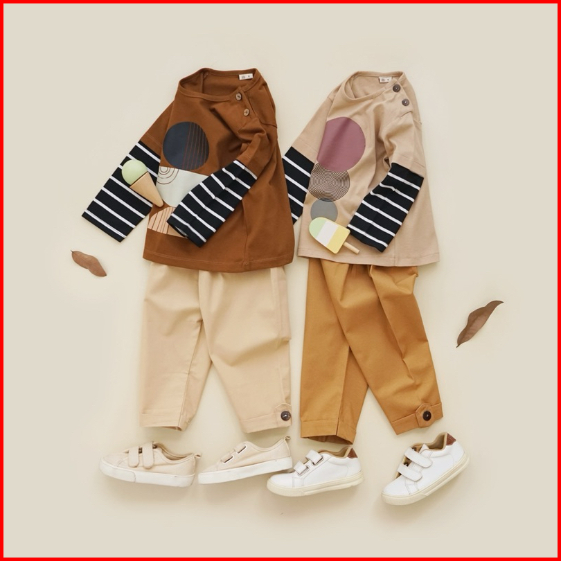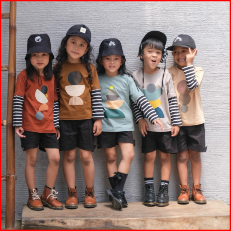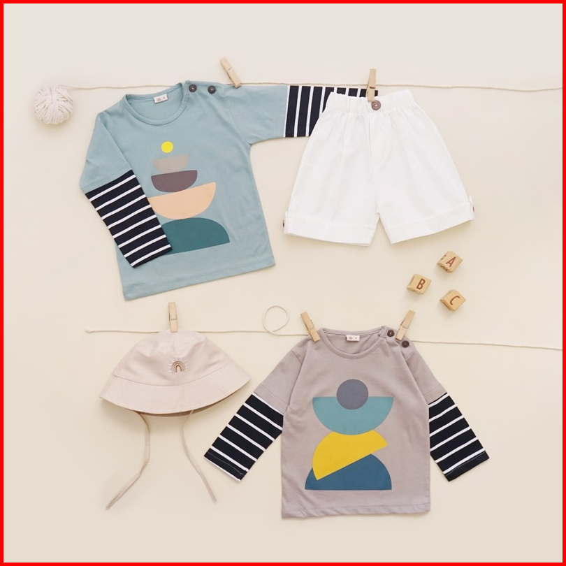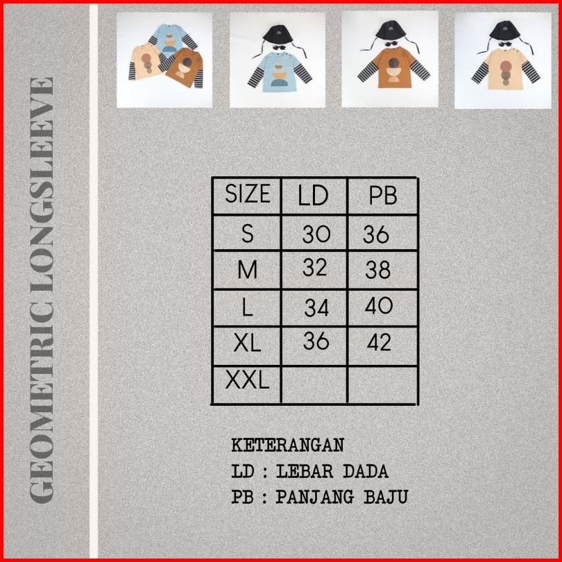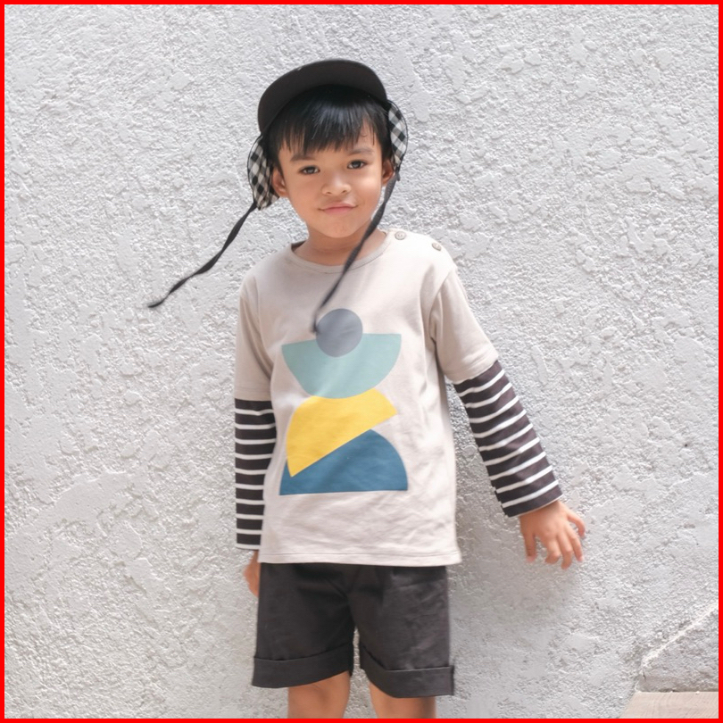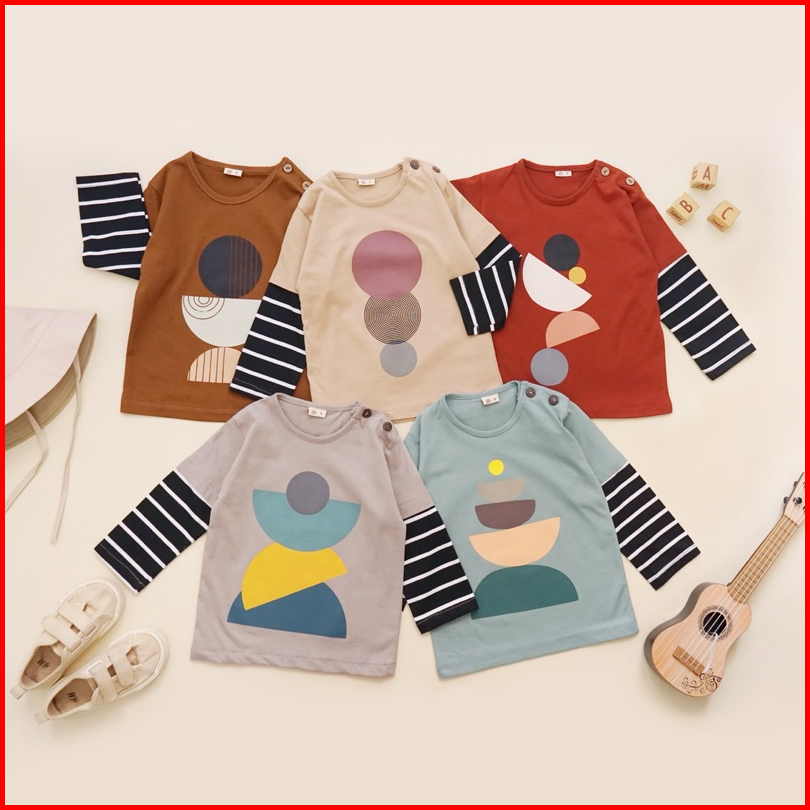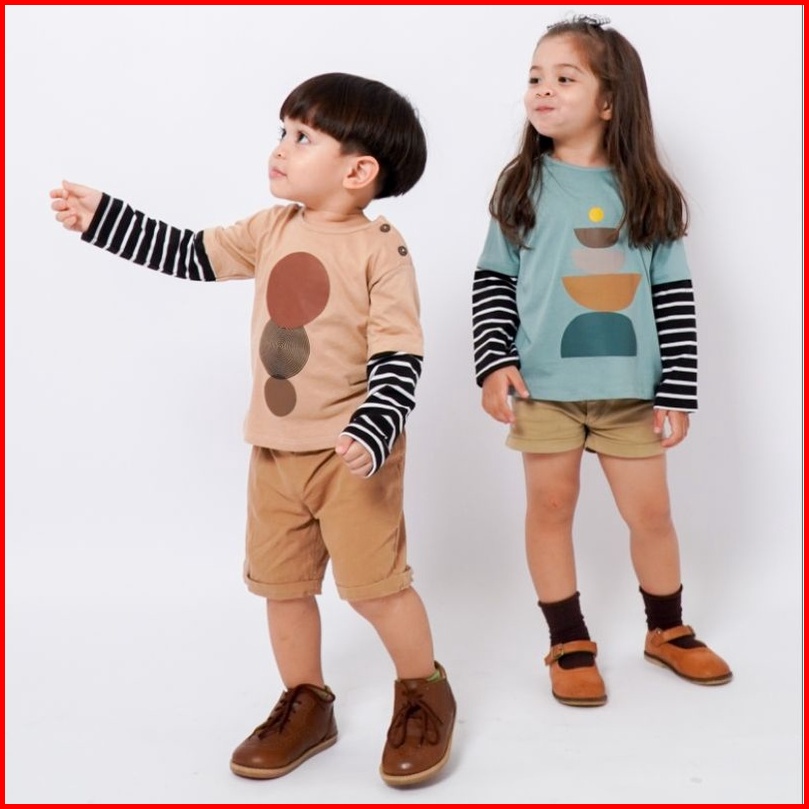 Geometric Longsleeve - Promo 10.10 Kaos Anak Stripe Sablon Baju Bayi Premium Kids Cewek Cowok Laki Perempuan 1-6 Th